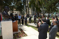 Bust of Mahatma Gandhi unveiled at the 'Garden of Nations' at Ramallah, State of Palestine [April 2014].