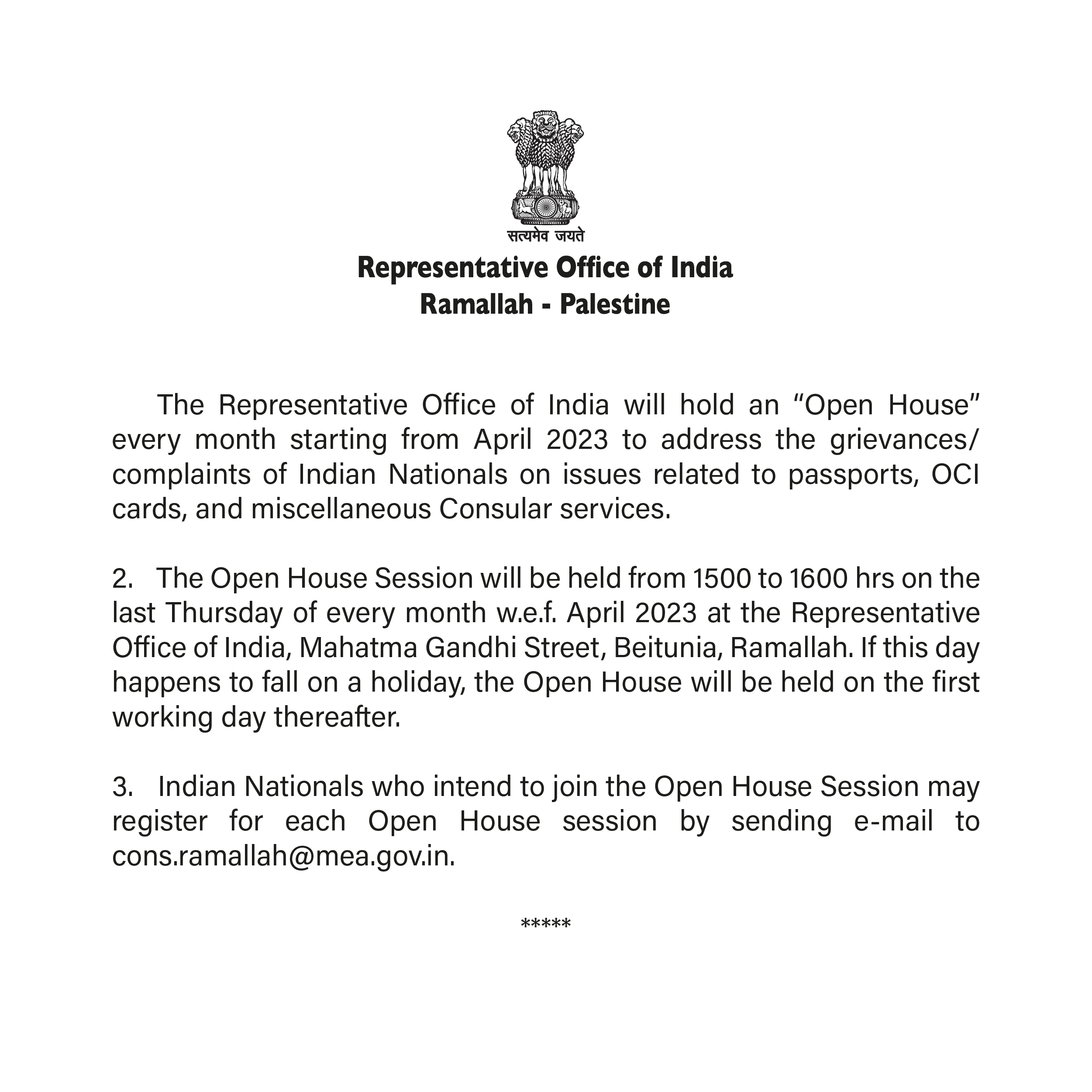 Representative Office of India , Ramallah, Palestine