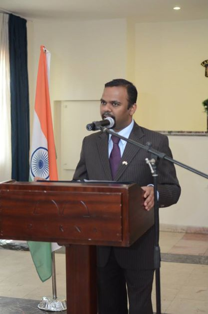 Representative of India, Shri B.S. Mubarak giving the first Visa issued by Representative Office of India to a Palestinian National, Mr. Eid K I Hammad.