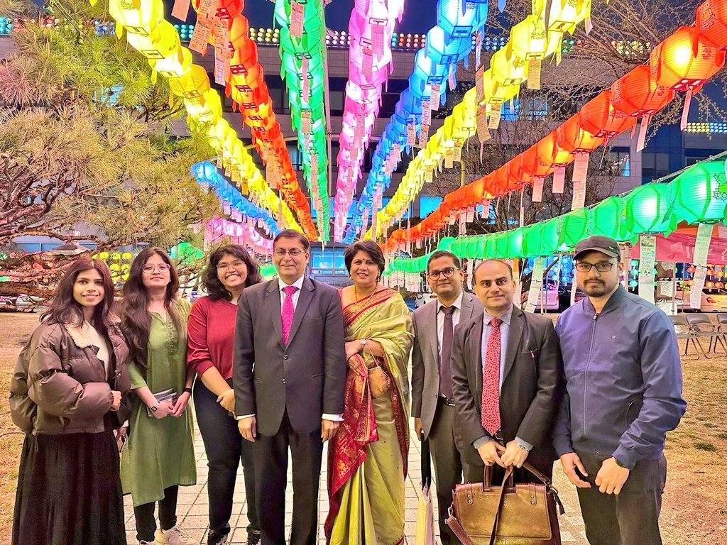 Ambassador Amit Kumar and his spouse were honored to join Venerable Donkwan, Chairperson of Dongguk University & President Yun Jae-woong at their Lantern Lighting Ceremony on 09 April 2025 to celebrate Lord Buddha’s Birthday