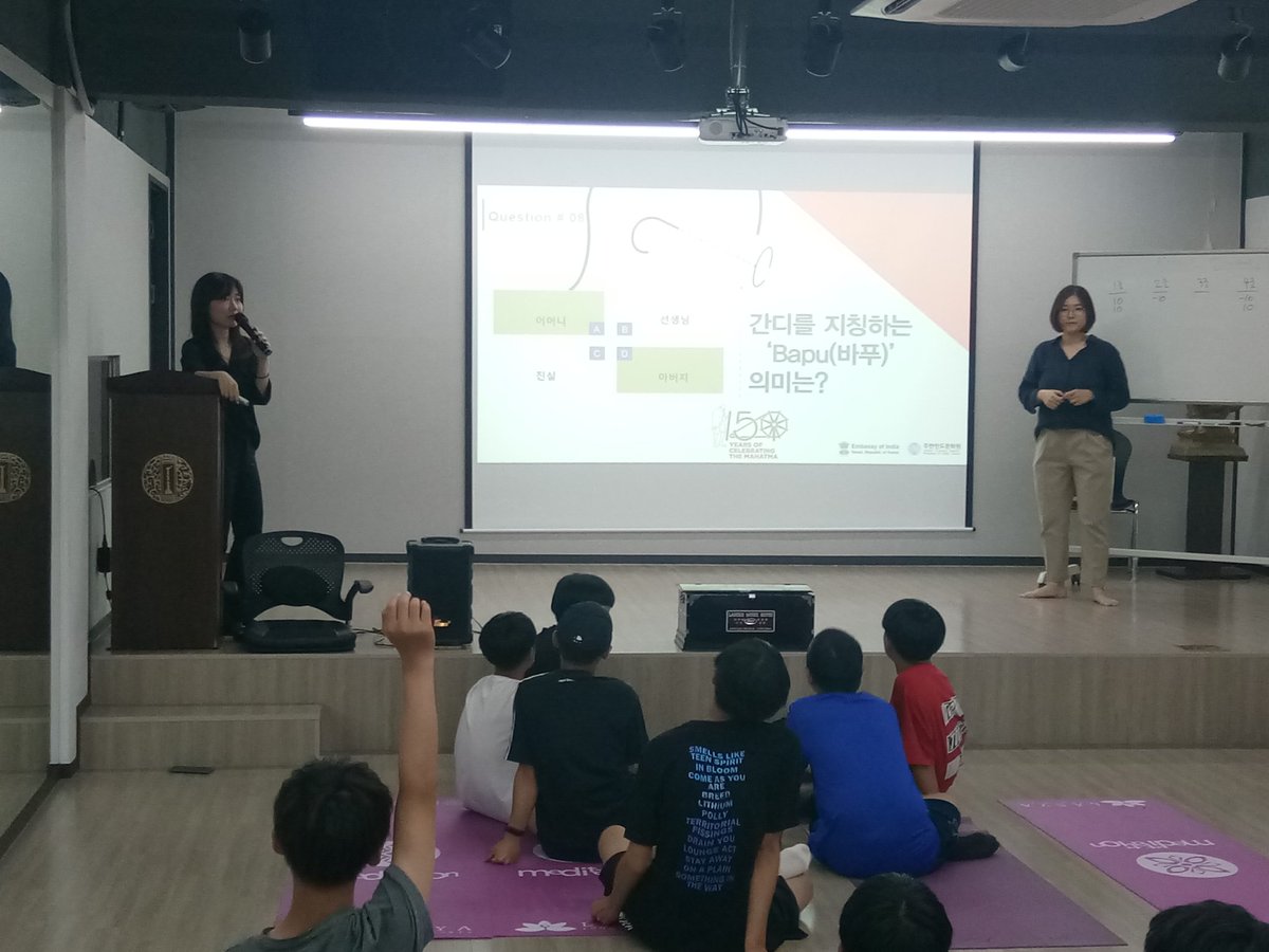 6ì›” 24ì¼, 주한ì¸ë„문화ì›ì„ 방문한 ë°°ëª…ì¤‘í•™êµ í•™ìƒë“¤ê³¼ ì˜¤í”ˆí•˜ìš°ìŠ¤í”„ë¡œê·¸ëž¨ì„ ì§„í–‰í–ˆìŠµë‹ˆë‹¤. 활기 넘치는 22ëª…ì˜ í•™ìƒë“¤ì€ ê°„ë”” 퀴즈, 까íƒê³¼ 요가 워í¬ìƒµì„ 체험했습니다.