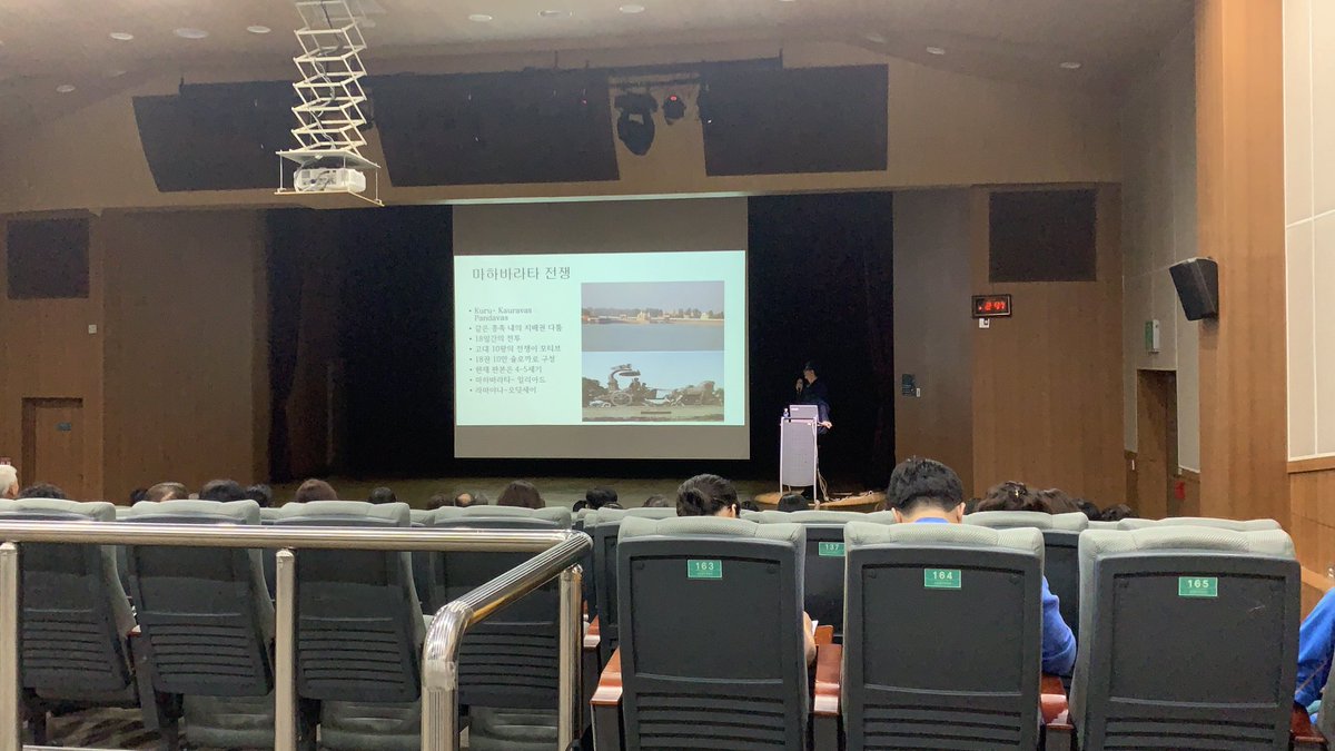 5th Gandhi lecture was held in Cheongju national museum on 4 August. With more than 80 participants, prof. Kim Hyung-jun has delivered a lecture 'Read India through Gandhi'. He briefly introduced mahabharata and brought bagavad gita to explain what Gandhi have thought and general beliefs of India. Despite of its long story, participants could enjoy it with the lecturer's homorous presentation.