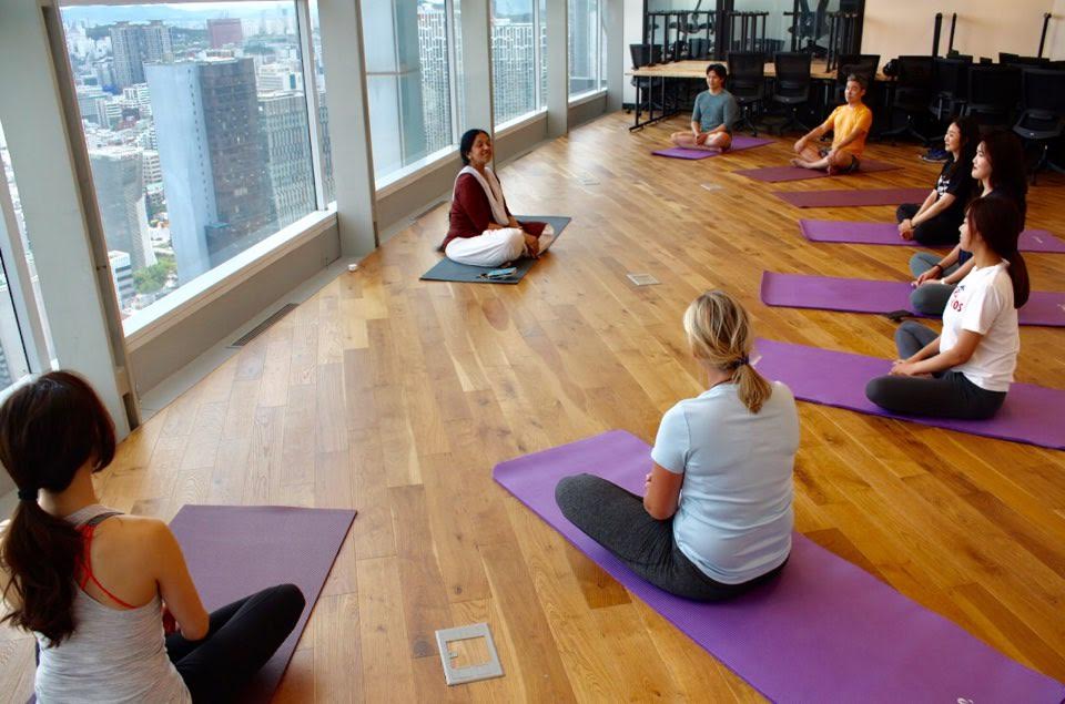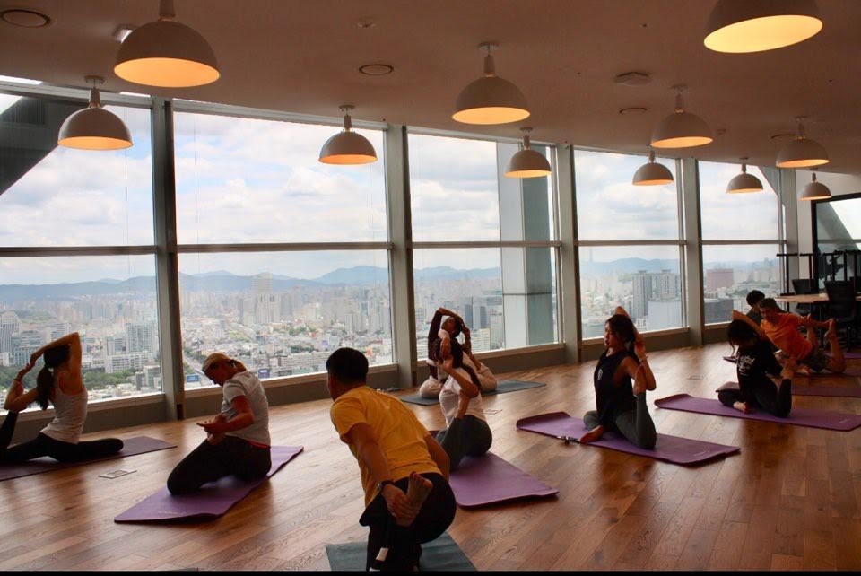As part of promoting healthy life style “HEASAN”, seaweed snacks combined Yoga for the partners working at WeWork. Ms. Soma Dutta conducted Yoga workshop followed by Meditation for 10 participants at We Work office at Jongno Tower on 9th July, 2019.
