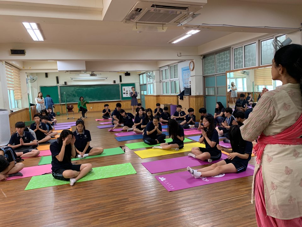 On 8 July, SVCC visited Hansan Middle School. Around 32 students experienced Kathak, and relieved their stress through Yoga & Meditation workshop. They also enthusiastically participated in Quiz on Gandhi.