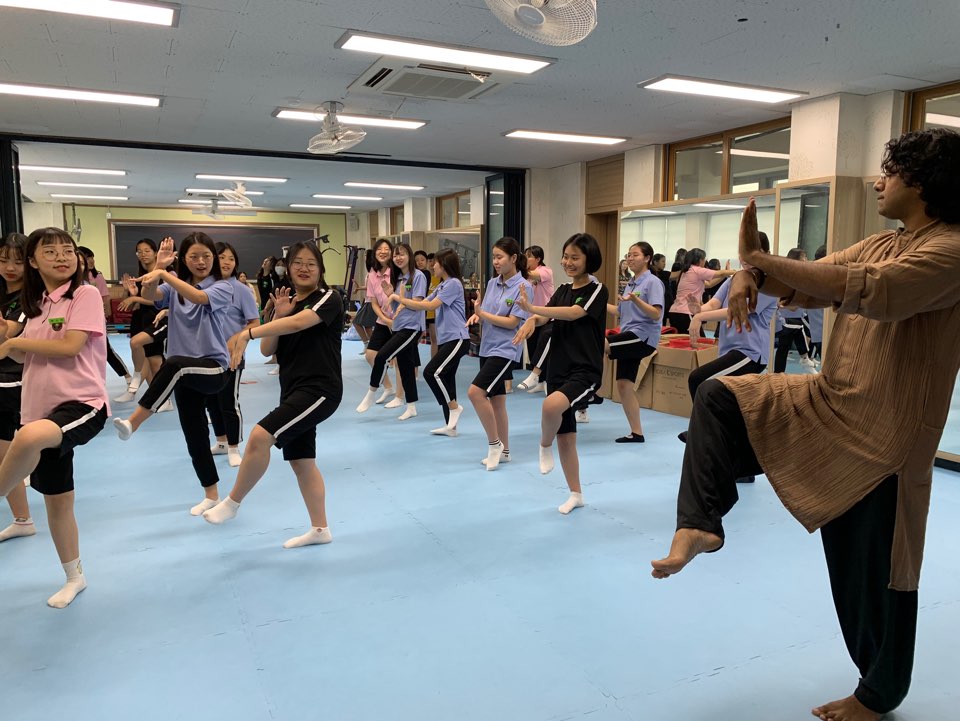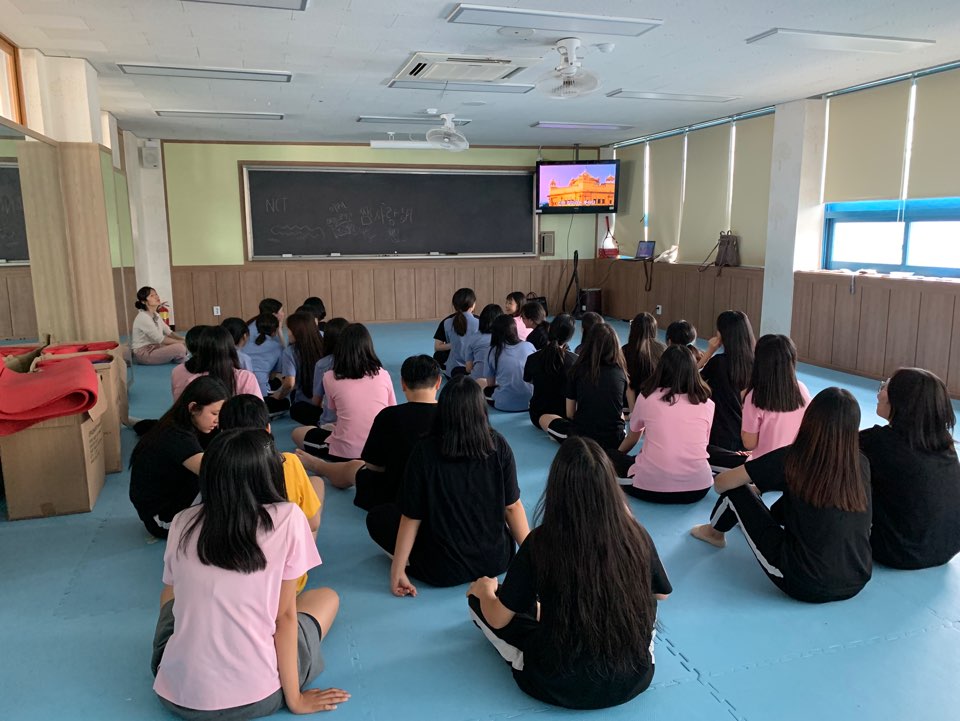 주한ì¸ë„문화ì›ì€ 7ì›” 15ì¼, ë™êµëŒ€ì‚¬ë²”ì—¬ìžì¤‘í•™êµë¥¼ 방문했습니다. ì¸ë„ 문화 배우는 ê²ƒì— ì—´ì˜ë¥¼ ë³´ì—¬ 준 약 35ëª…ì˜ í•™ìƒë“¤ì´ 참여했습니다. ê¹Œíƒ ì¶¤ ë™ìž‘, ì œìŠ¤ì²˜ ë“±ì„ ì²´í—˜í–ˆê³ ìš”ê°€/ëª…ìƒ ì›Œí¬ìƒµì„ 통해 릴랙스하는 ì‹œê°„ì„ ê°€ì¡ŒìŠµë‹ˆë‹¤.