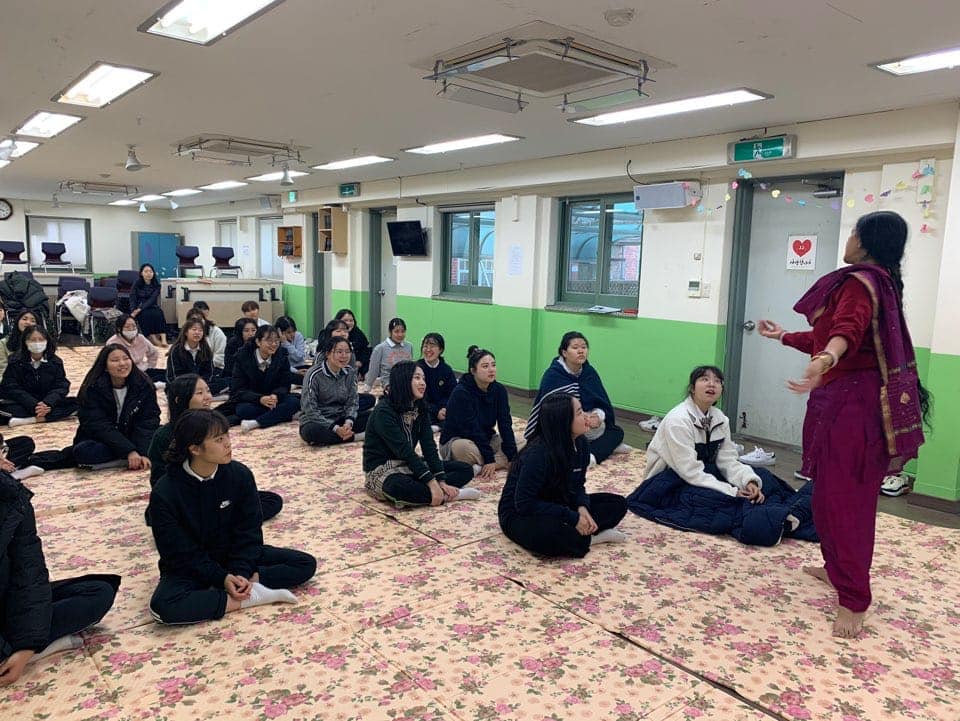주한ì¸ë„문화ì›ì€ 11ì›” 22ì¼ ë°°í™”ì—¬ê³ ì—서 í•™êµë°©ë¬¸ 프로그램으로 ê¹Œíƒ ì¶¤ê³¼ 요가,ëª…ìƒ ì›Œí¬ìƒµì„ 진행하였습니다. í•™ìƒë“¤ì€ ì¸ë„ 문화를 ë°°ìš°ê³ ì¸ë„ì— ëŒ€í•œ 퀴즈를 풀면서 ì¦ê±°ìš´ ì‹œê°„ì„ í•¨ê»˜ 하였습니다.