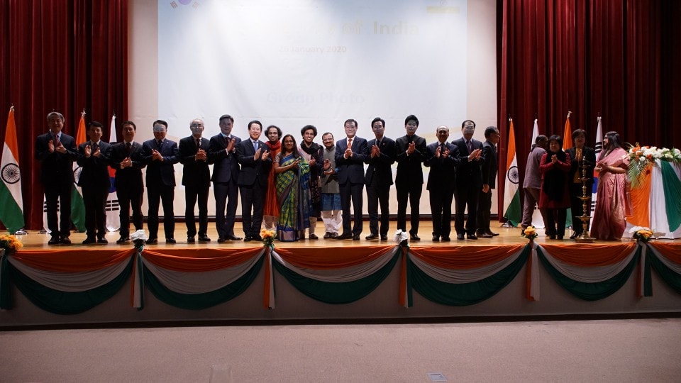 Embassy of India celebrated the 71st Republic Day with fervour by hosting a reception at the Kim Dae Jung Covention Center, Gwangju on January 31, 2020. More than 200 guests including senior dignitaries from the Government of Republic of Korea and Gwangju Metropolitan council, Senior Executives from Korean Businesses, Academia,Diplomatic Corps and Indian students from Gwangju participated. H.E. Mr Chang Jae-bok, Ambassador for Public Diplomacy, Mr. Lee yong-seop, Mayor Gwangju Metropolitan city and H.E. Kim Yung Rok, Governor Jeollanamdo Province graced this occasion by their presence. A cultural show on the theme classical music of India followed which enthralled the guest.