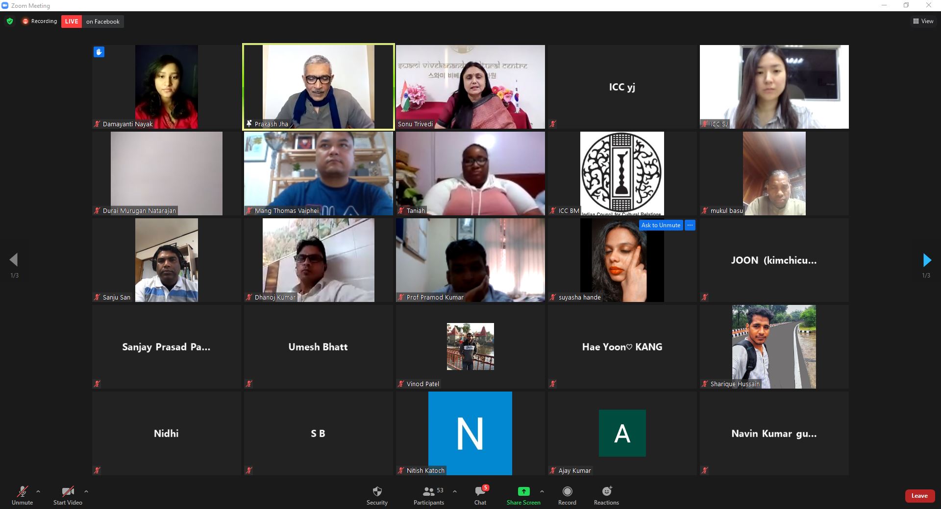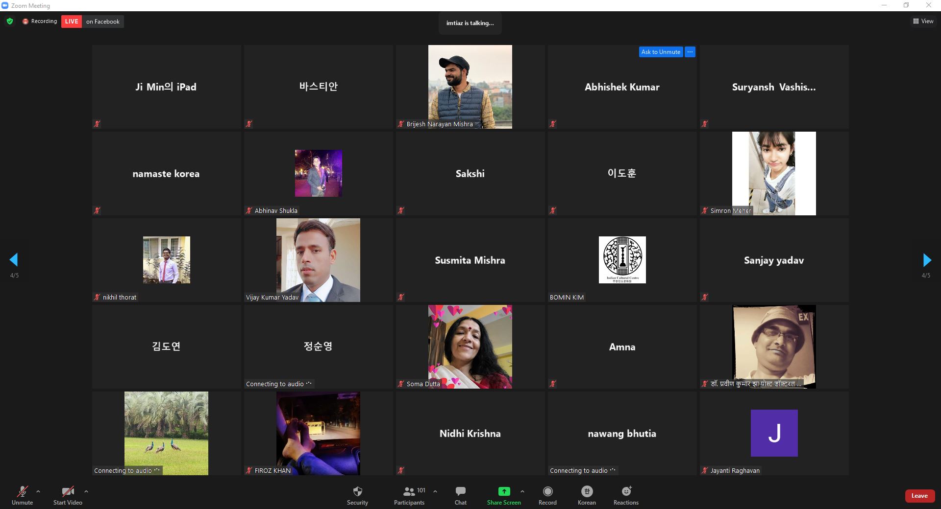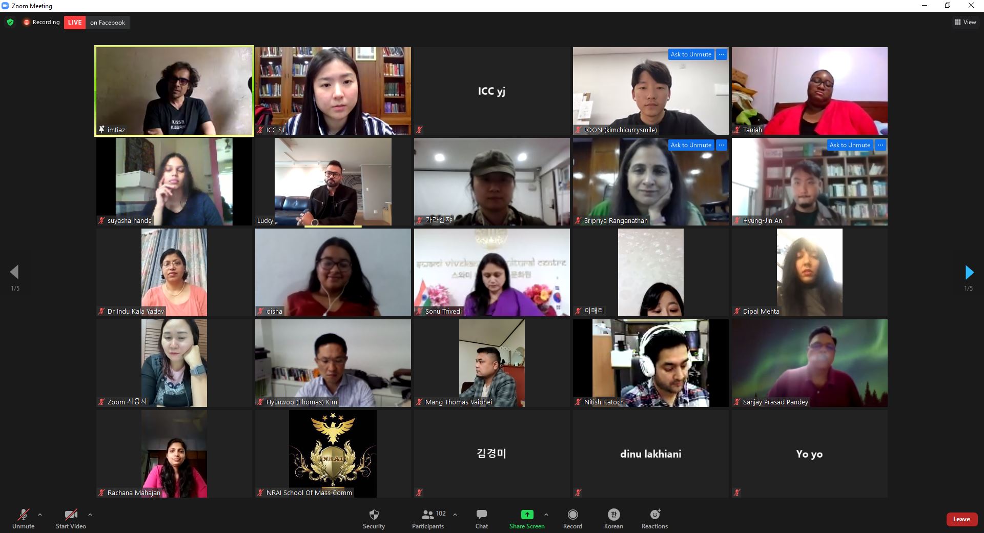The Inaugural Session was hosted by the Cultural Centre Online on 16th October 2020 which featured a LIVE interaction with Mr. Imtiaz Ali, a noted Indian Film Director whose block buster films like ‘Jab We Met’, ‘Rockstar’, ‘Highway’ and ‘Love Aaj Kal’ have created records in the box office. Mr Lucky, an Indian TV personality in Korea and restaurateur had conversation with Mr. Imtiaz Ali which was followed by the LIVE interaction by the participants.