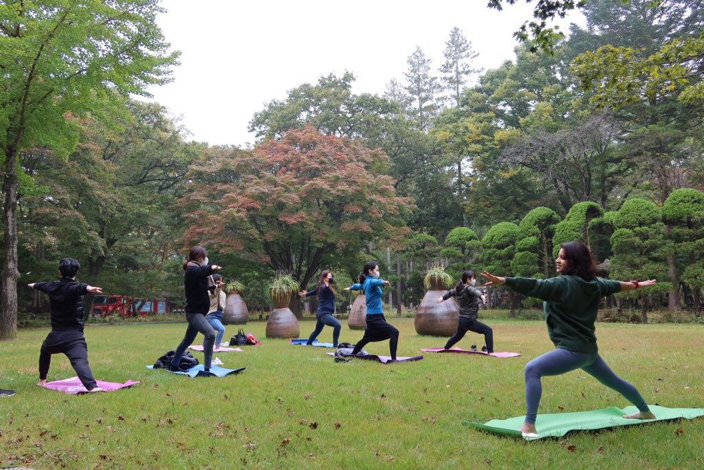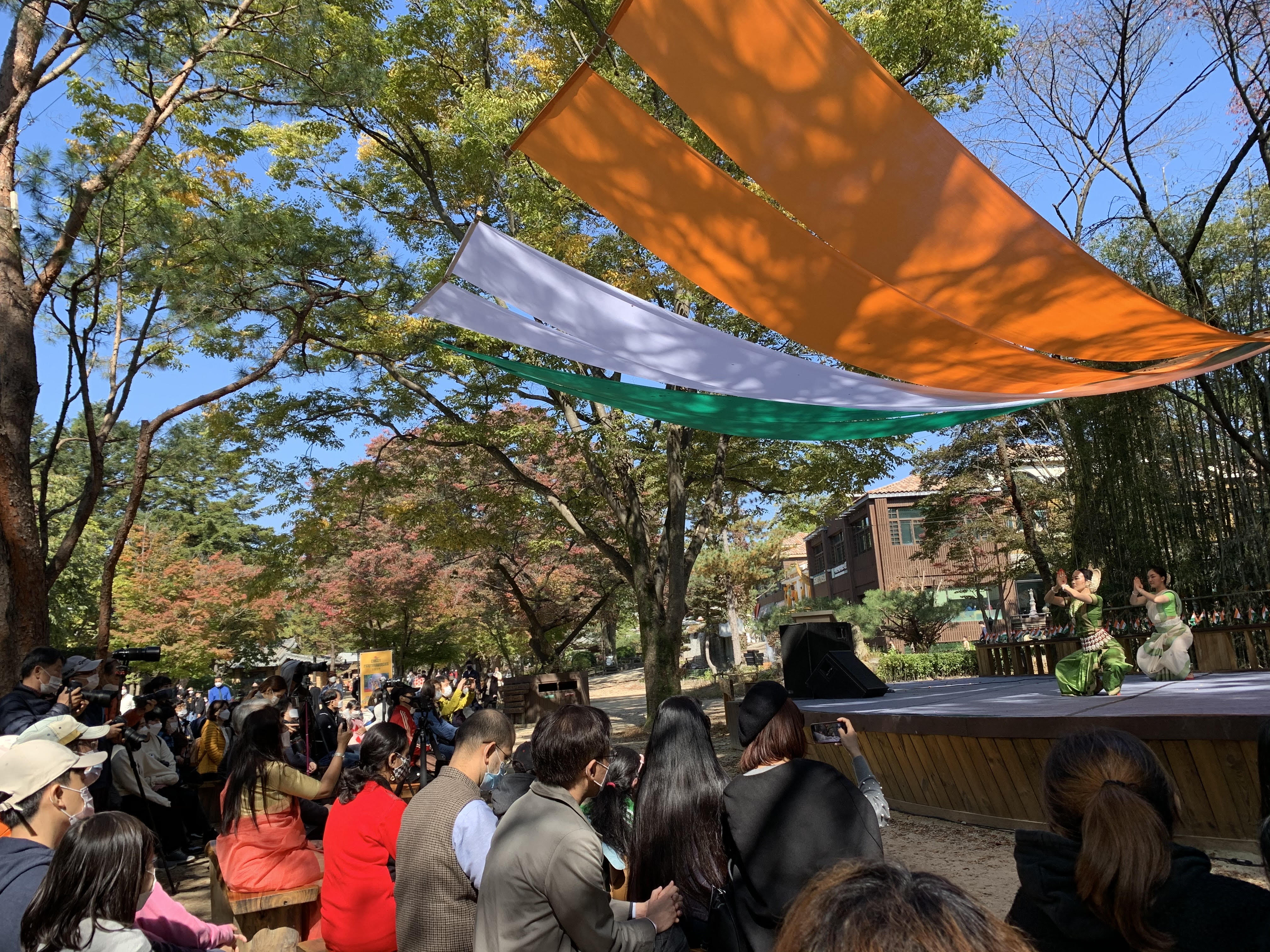 The Indian culture showcased at Nami Island famous for its scenic beauty and picturesque surrounding on 17-18th October 2020. It hosted the Classical Indian Odissi dance recital by Korean Odissi Dancer Ms. Beena Keum and her group. Kathak dance was performed by Ms Oh Sukhee, Korean Kathak dancer. A student’s dance group ‘Saraswati’ from Hankuk University of Foreign Studies danced on the tune of famous Bollywood numbers. Keeping in tune with nature, Yoga Sessions was also organized at the mystic gardens of Nami Island famous for its incredible scenery and beautiful landscape.