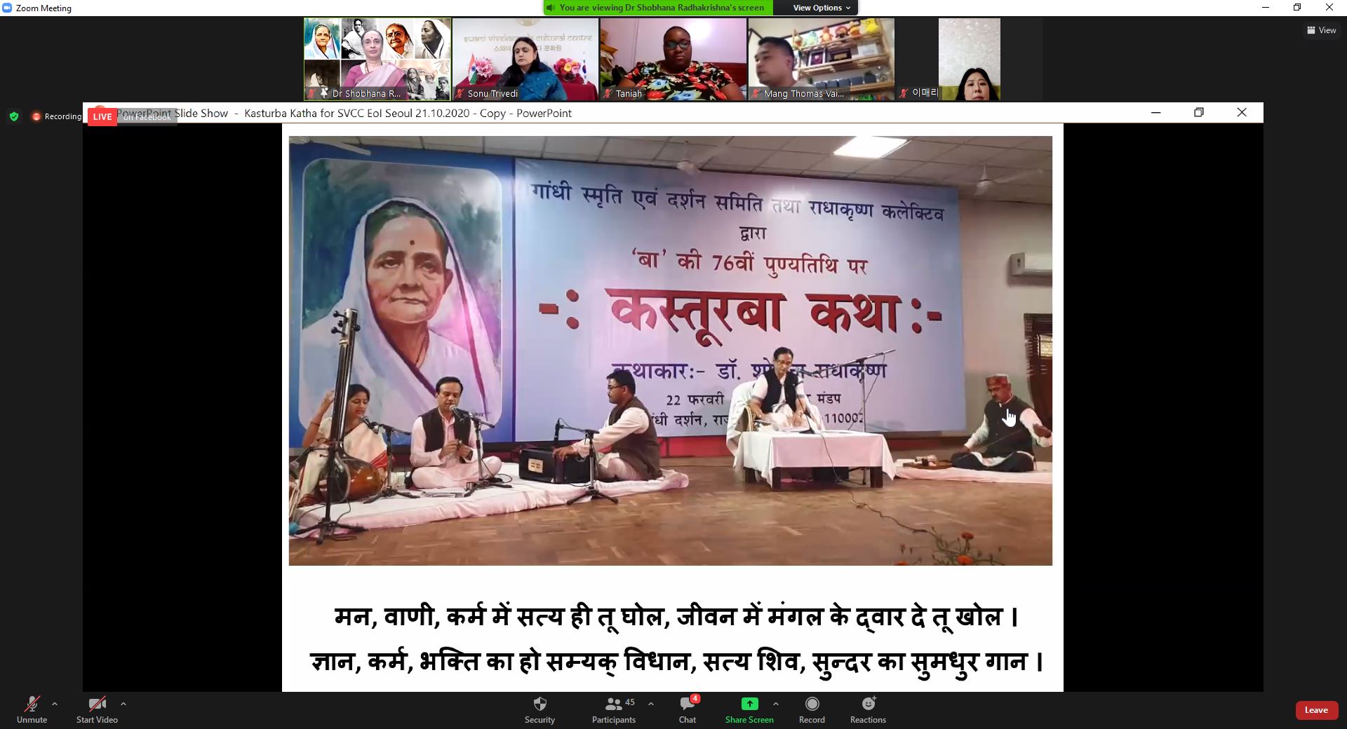 Remembering the legacy of Mahatma Gandhi and noteworthy role played by his wife Mrs. Kasturba Gandhi in ‘making Gandhi into a Mahatma’, a ‘Kasturba Katha’ was narrated by noted Gandhian scholar – Dr. Shobhana Radhakrishna on 21st October 2020.