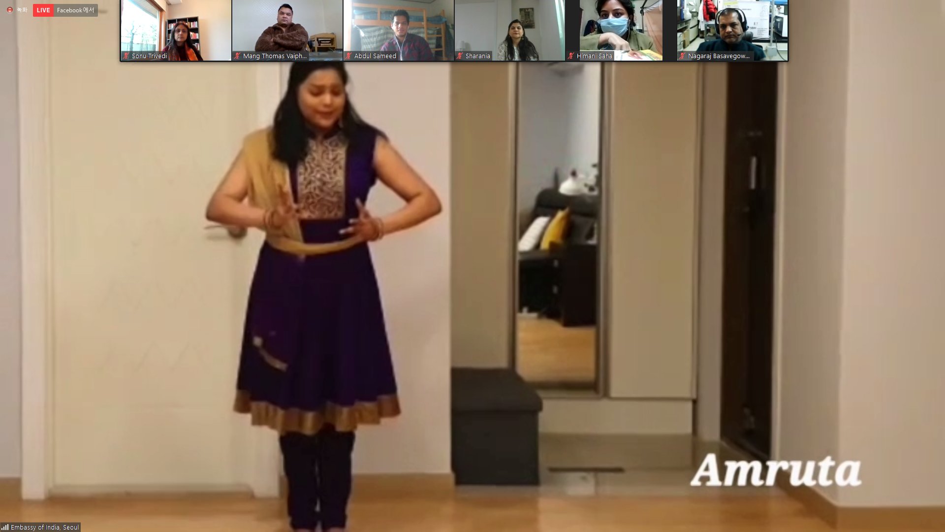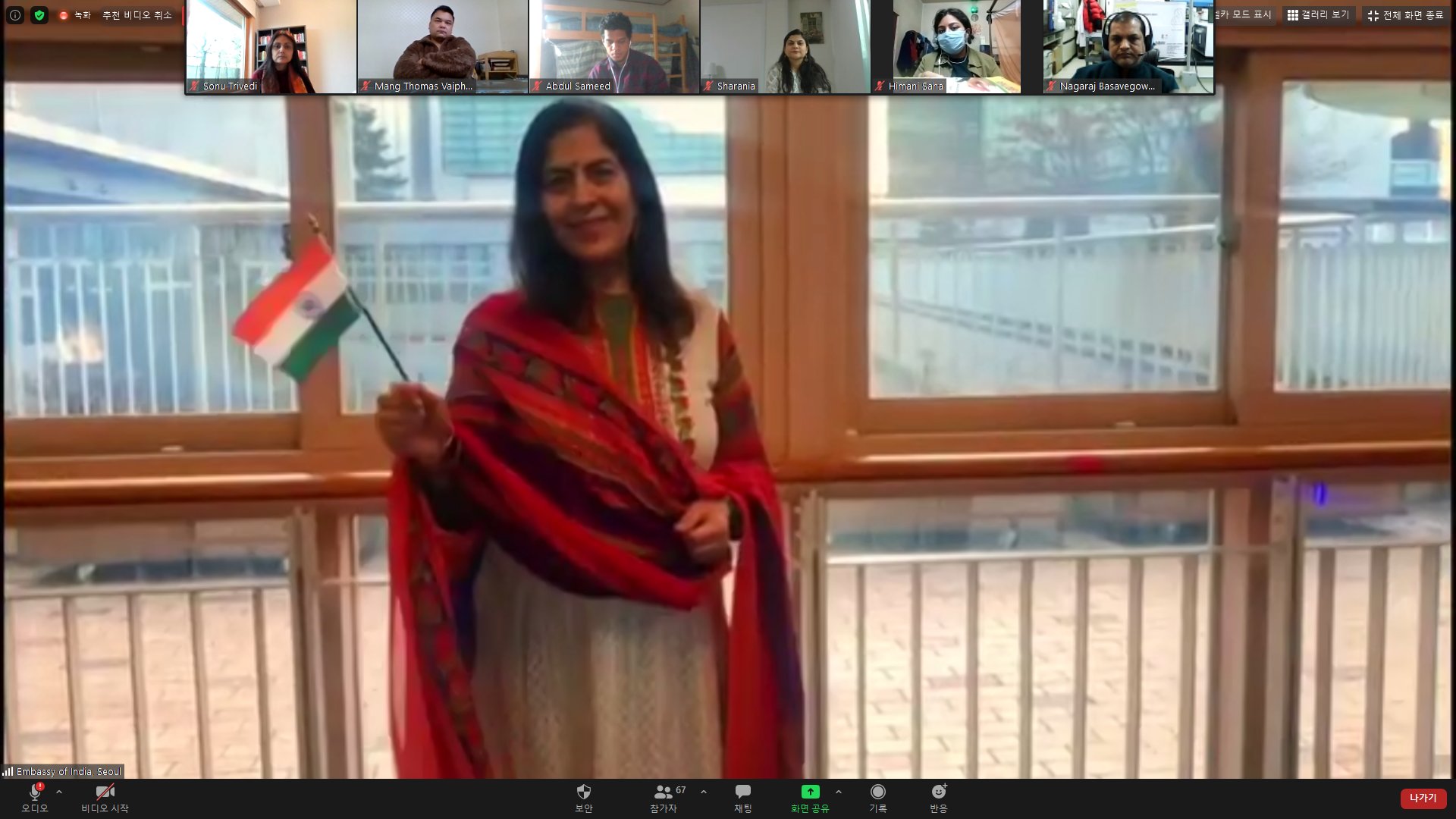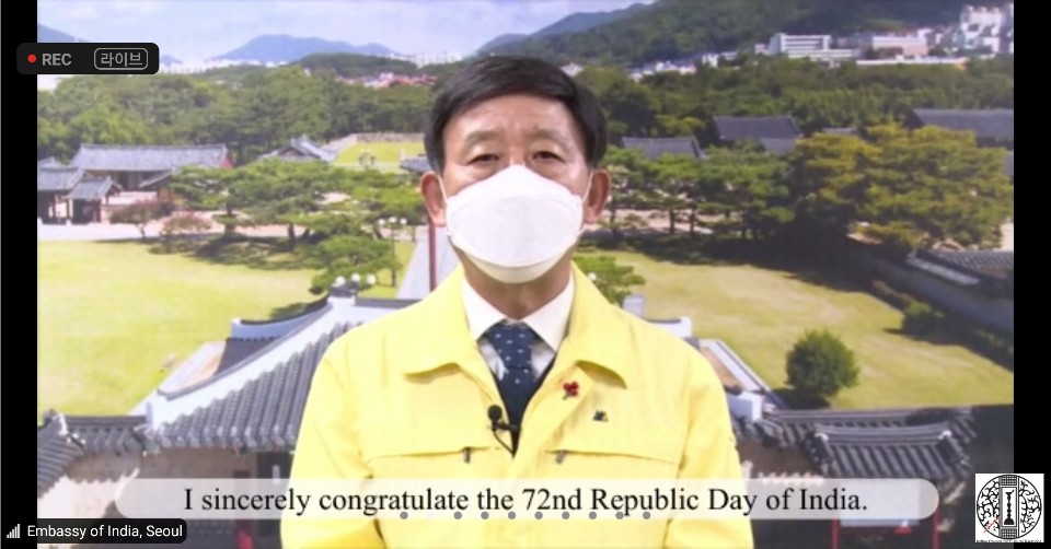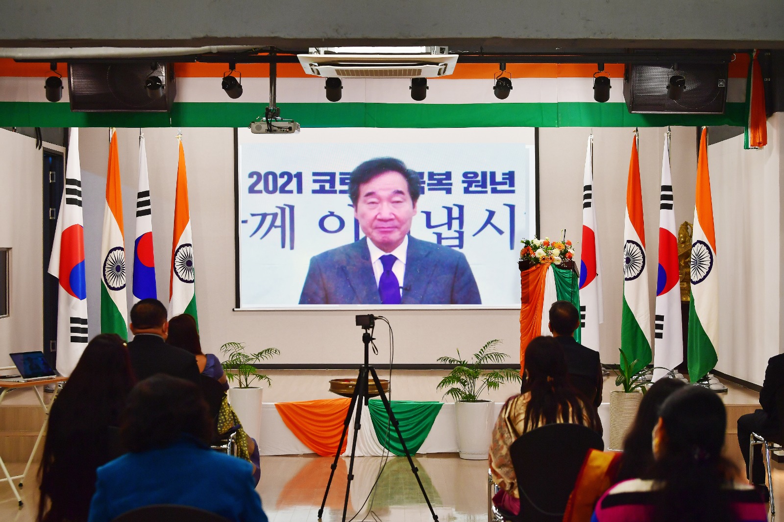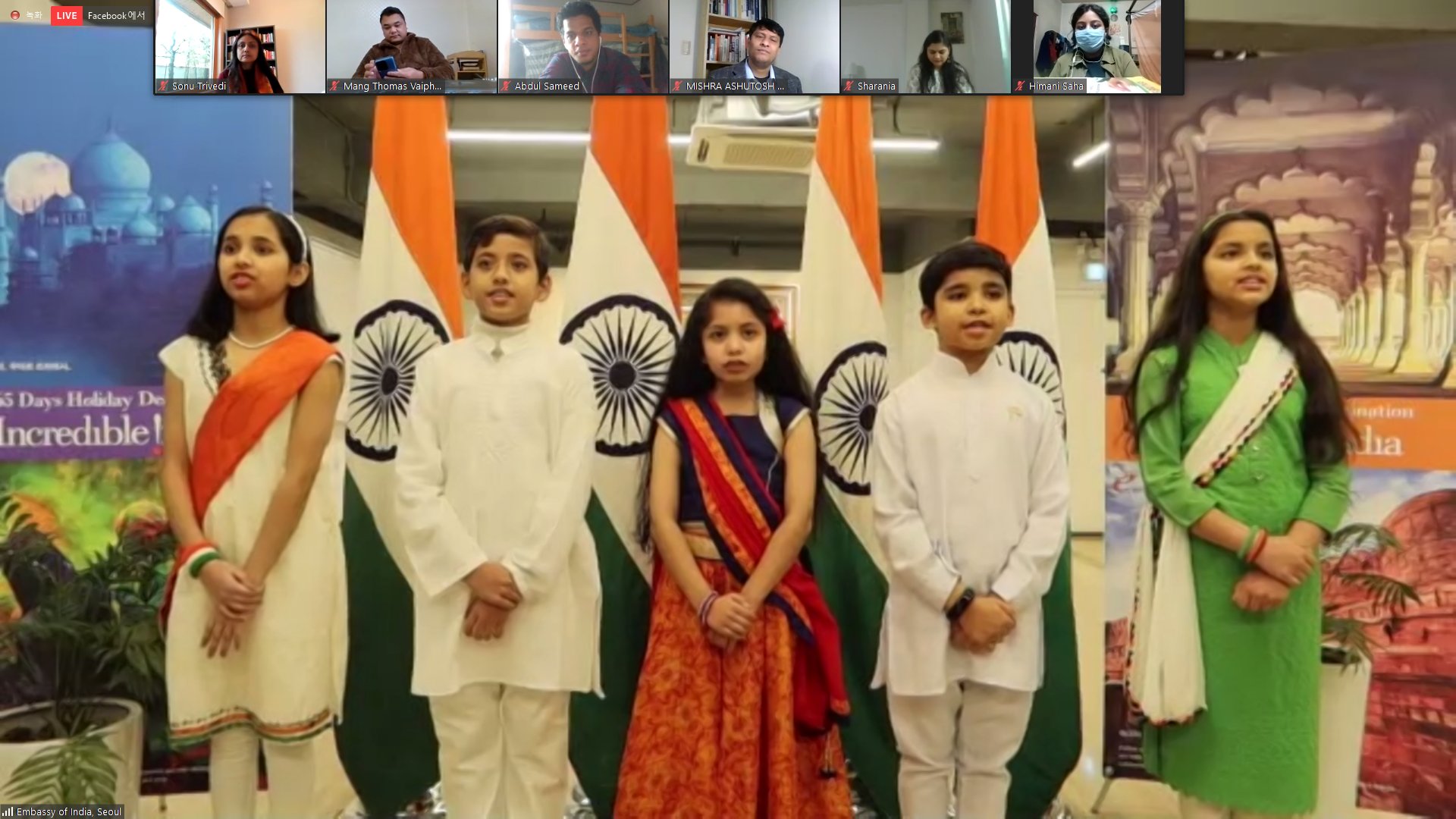 The event continued with talented Indian and Korean communities giving various performances including patriotic songs by children of Indian Embassy officials, Gayageum performances from Gimhae city and dance performances from Indian community members. More than 150 people including Korean officials and friends of India and Indian community members participated the event online.