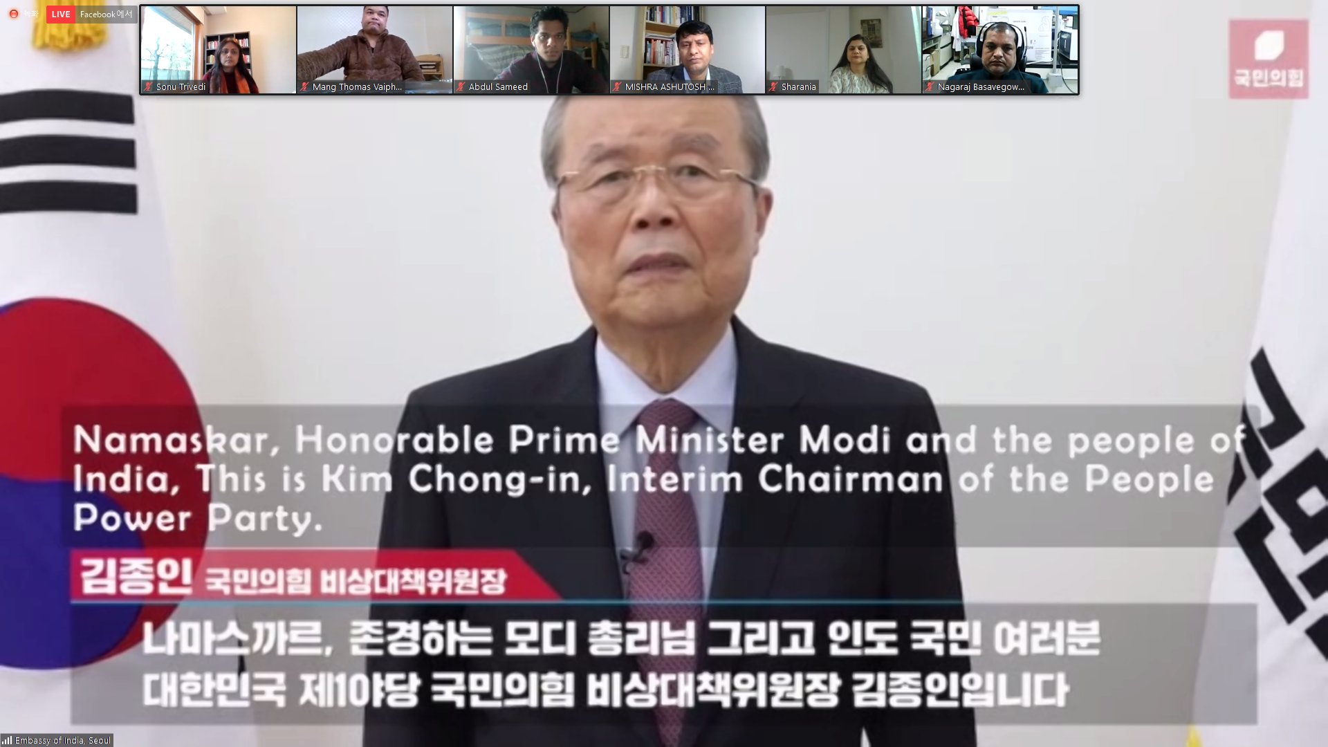 Important Korean dignitaries including Mr. Lee Nak-yon, former Prime Minister and current Chairman of the Ruling Democratic Party, Mr. Kim Chong-in, Chairman of the main opposition party- People Power Party, Mr. Song Young-gil, Chairman of the Foreign Affairs and Unification Committee, Dr. Park Bok-yeong, Economic Advisor to the President and Chairperson of the Presidential Committee on New Southern Policy, Mr. Heo Seong-gon, Mayor of Gimhae City gave congratulatory remarks, showing the bipartisan support to the India-Korea Special Strategic Partnership.