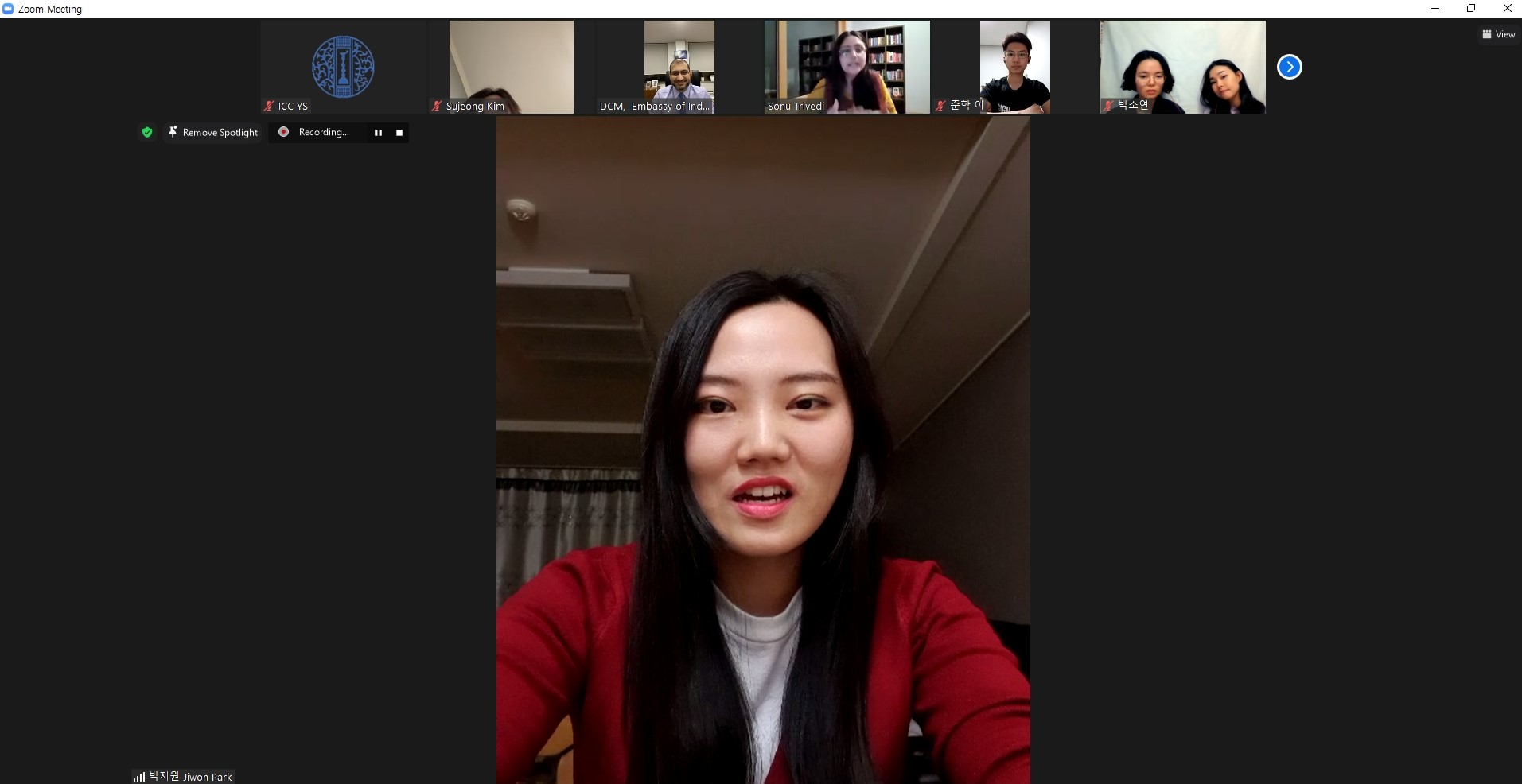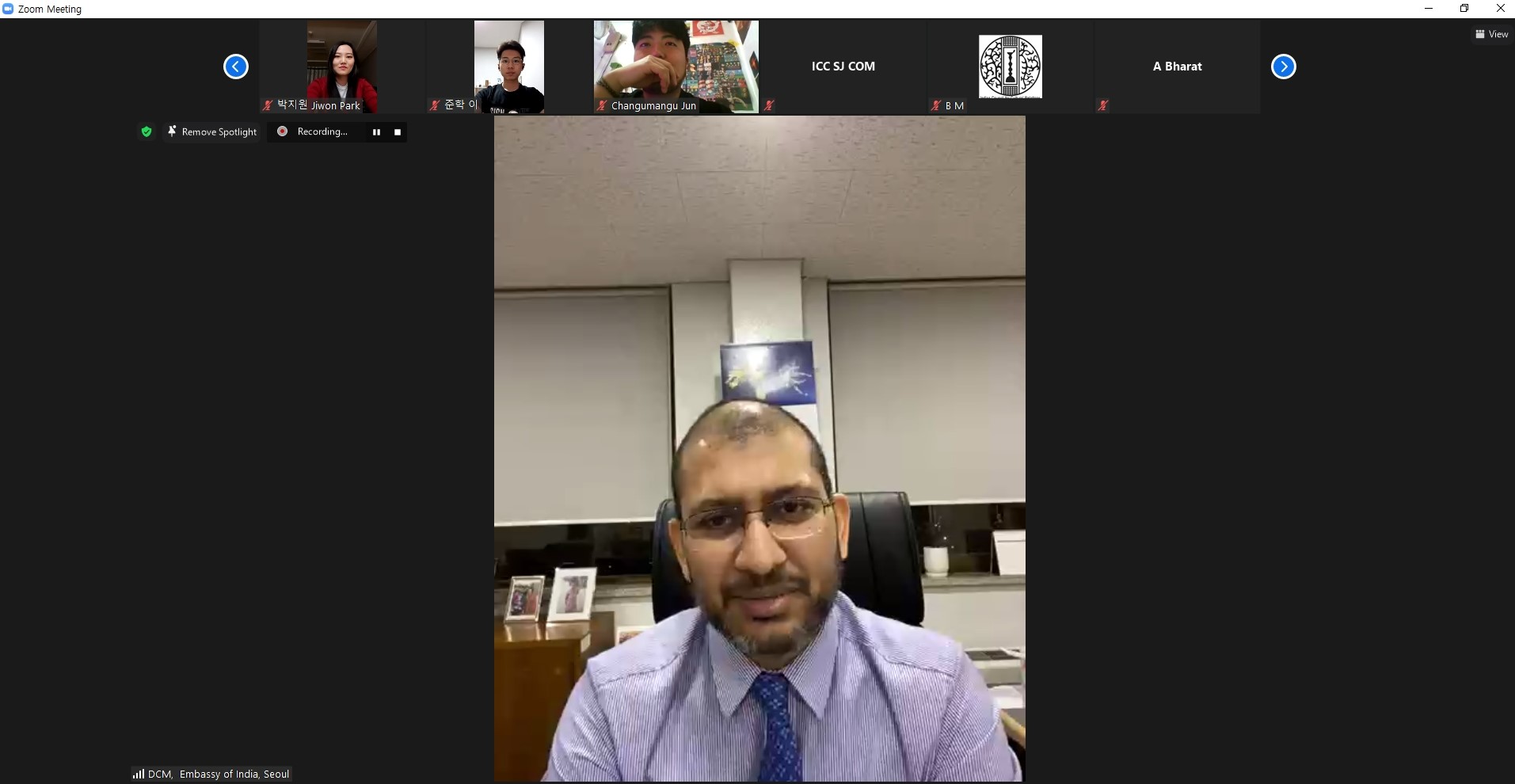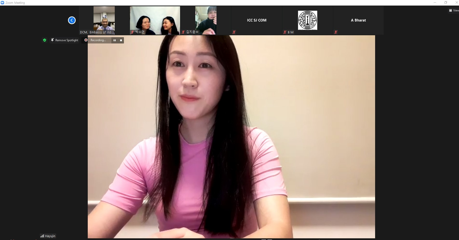 Awarding Ceremony on Hindi Video Blogging Competition was held on 18th March, 2021 via Video Conference. Mr. Surinder Bhagat, Deputy Chief of Mission congratulated the winners of the Hindi Video Blogging Competition organised by Swami Vivekananda Cultural Centre, Seoul in collaboration with Centre for Critical Foreign Language Education,