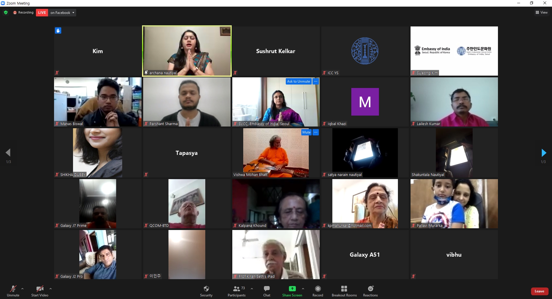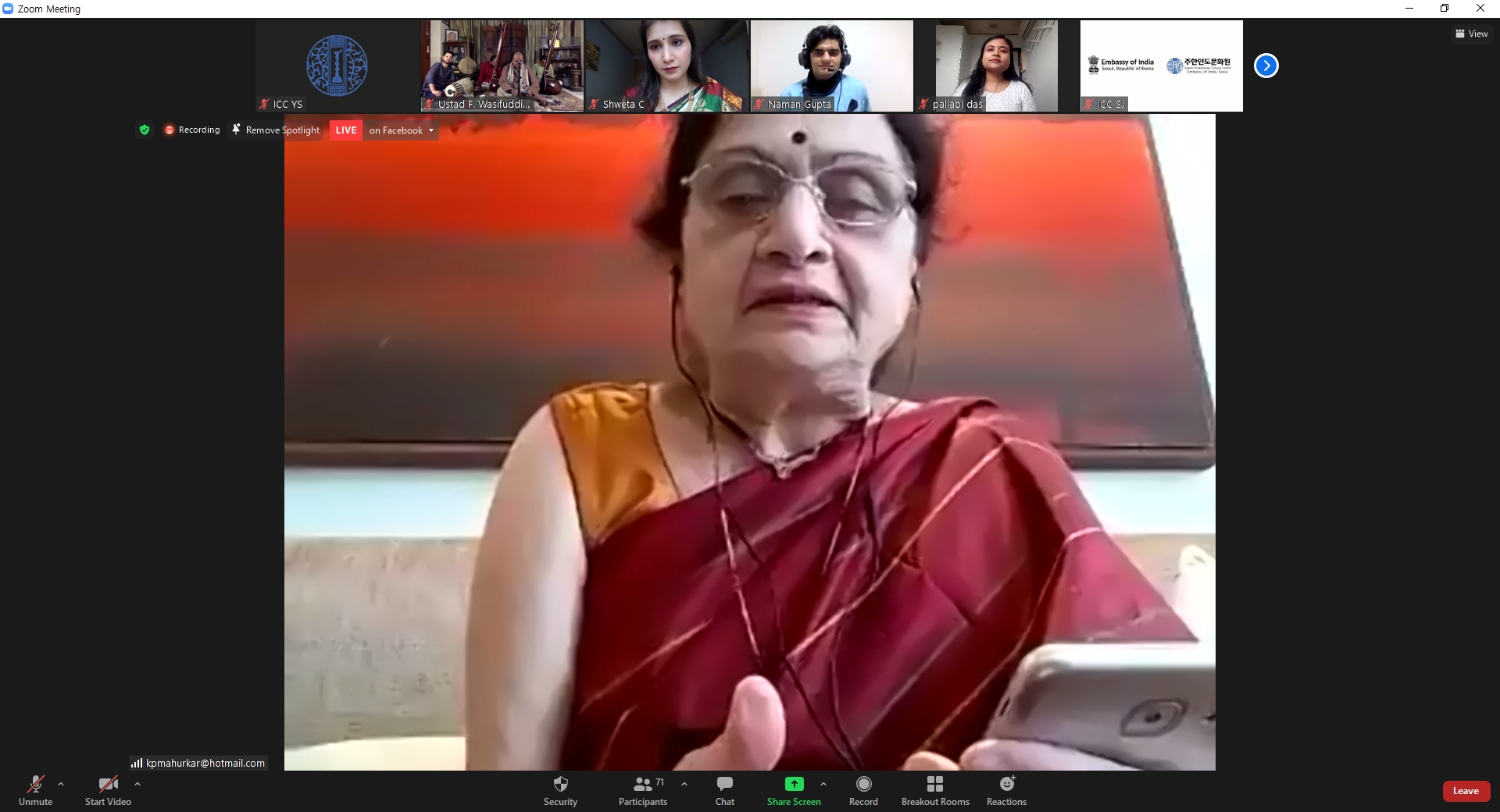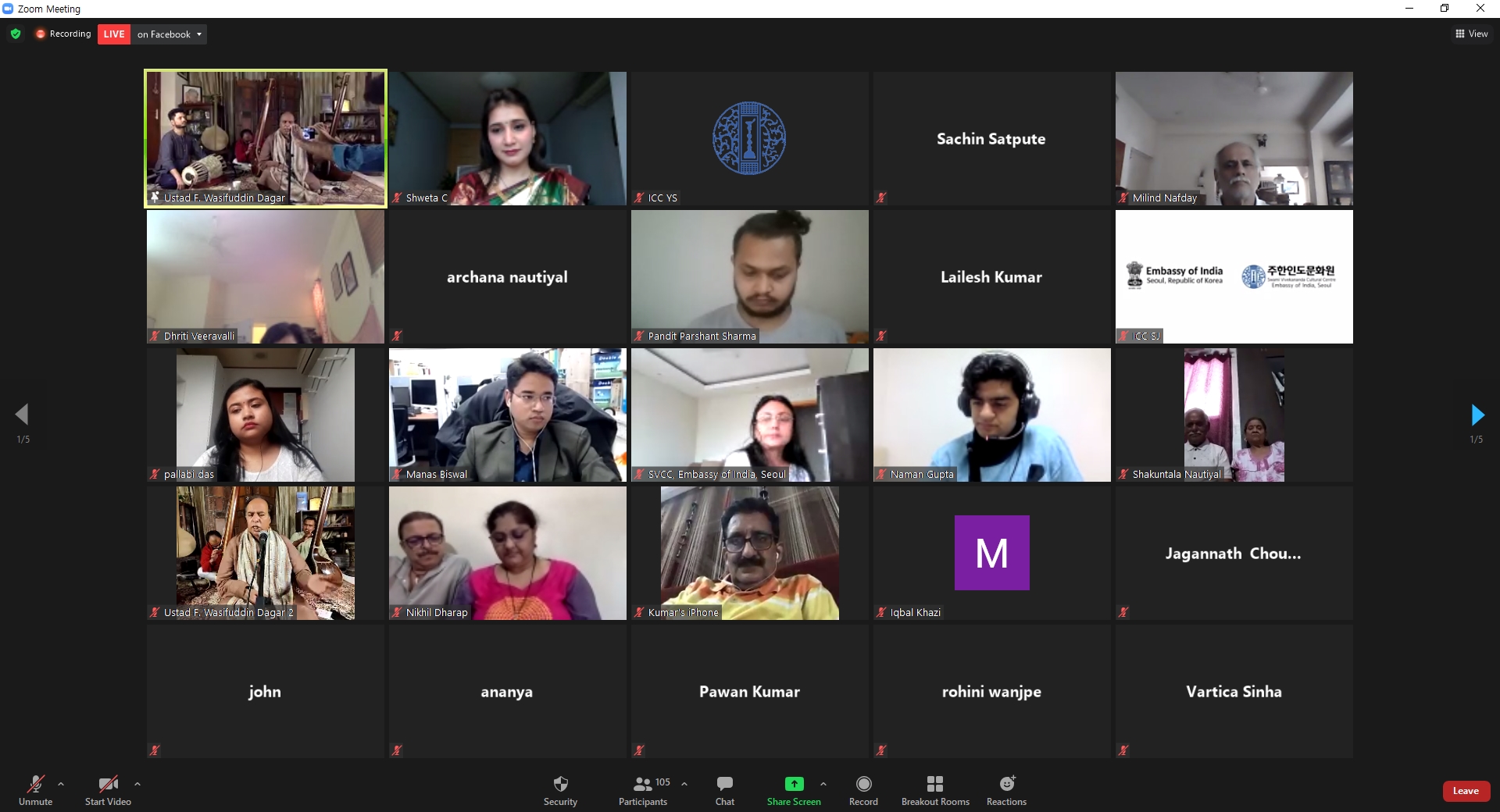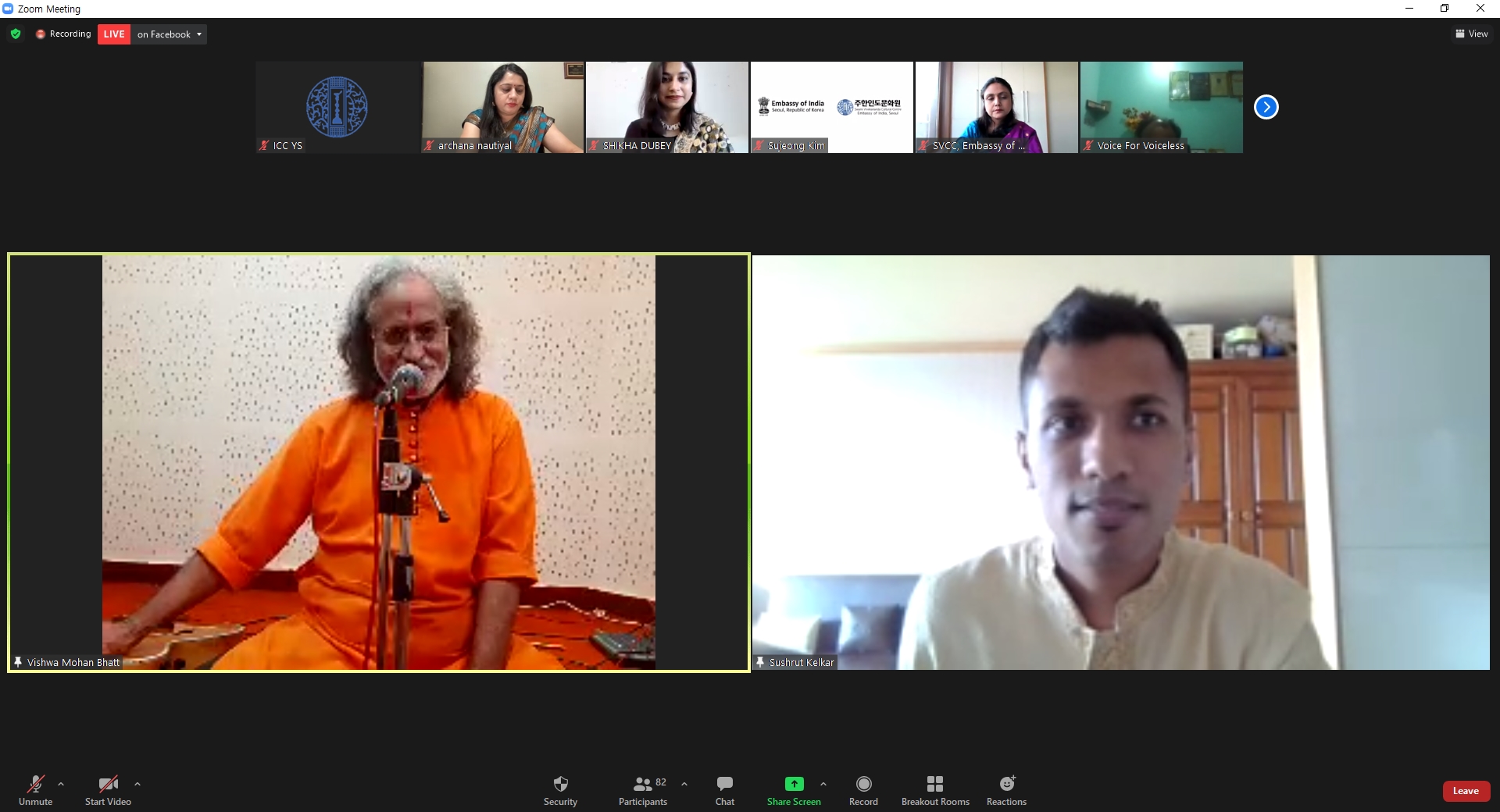 On the occasion of World Culture Day Swami Vivekananda Cultural Centre, Embassy of India Seoul in association with SPIC MACAY - Korea and Indian Students and Researchers in Korea organised a MYSTIC MUSIC SERIES for spreading hope and positivity and in remembrance of music maestros Pt. Rajan Mishra and Pt. Debu Choudhuri on May 22-23, 2021. This was also a part of India@75 celebrations commemorating 75 years of India as a nation.