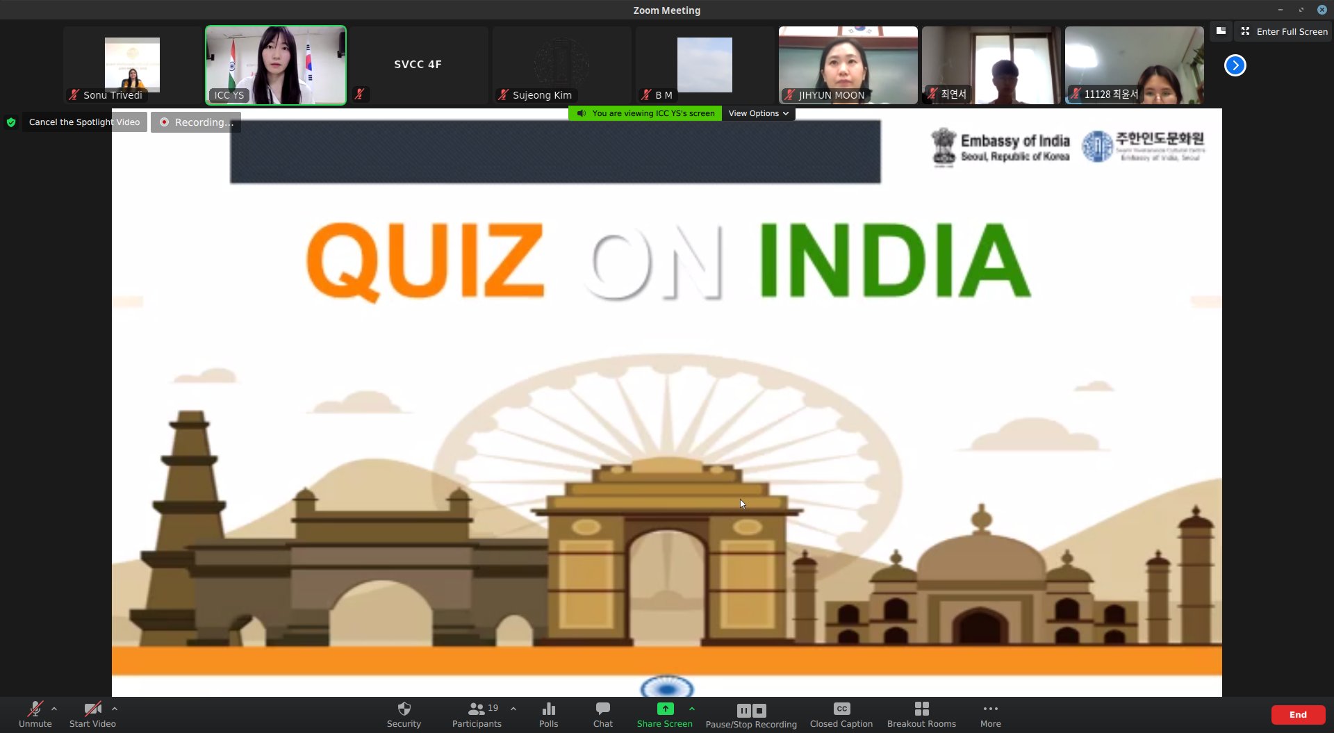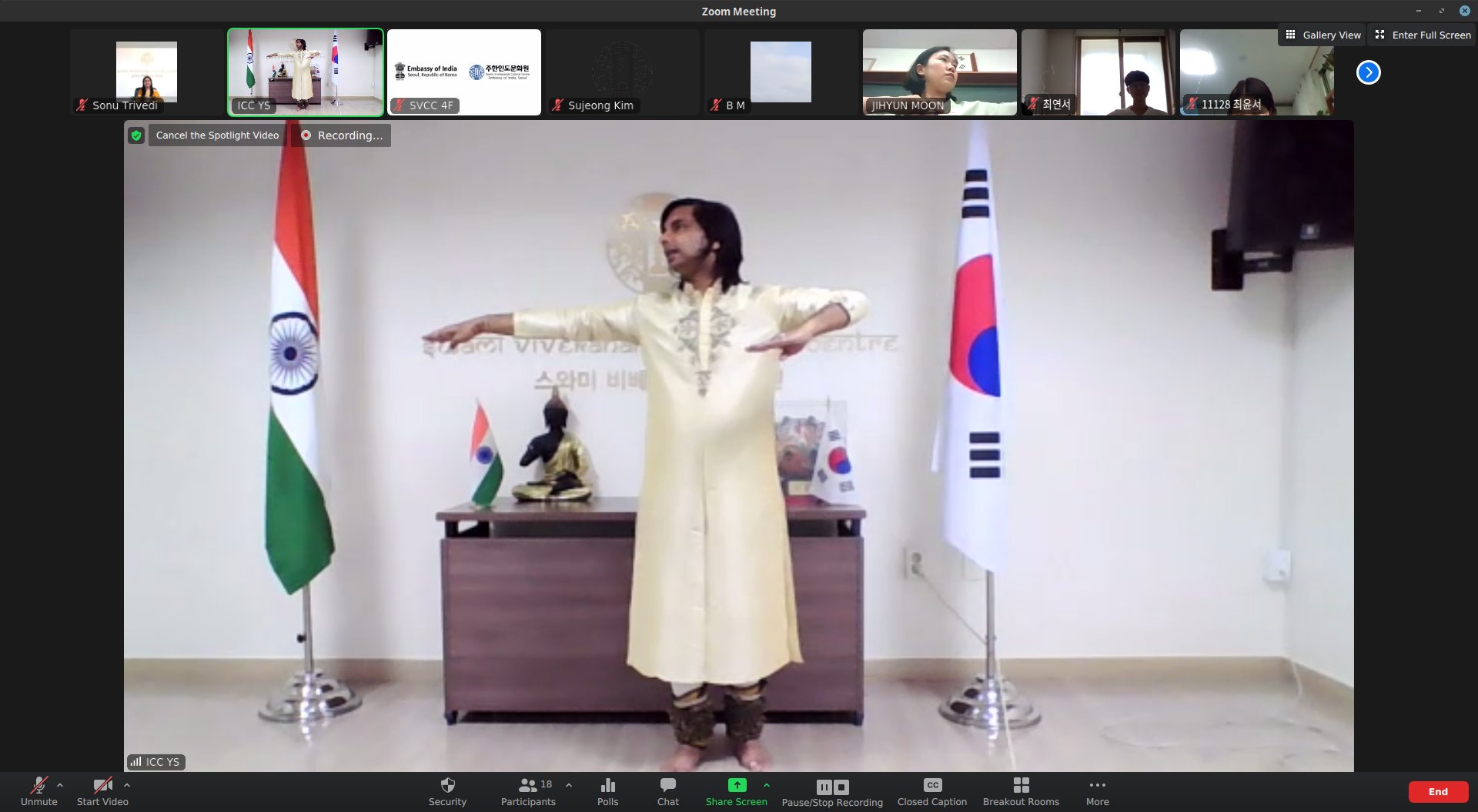 Open House Session on India was organised for students from Chungshin Girls' High School. On this occasion Kathak and Yoga Workshop along with a Quiz on India was organised. Dr. Sonu Trivedi, Director, SVCC introduced to the students about the activities of the Cultural Centre.