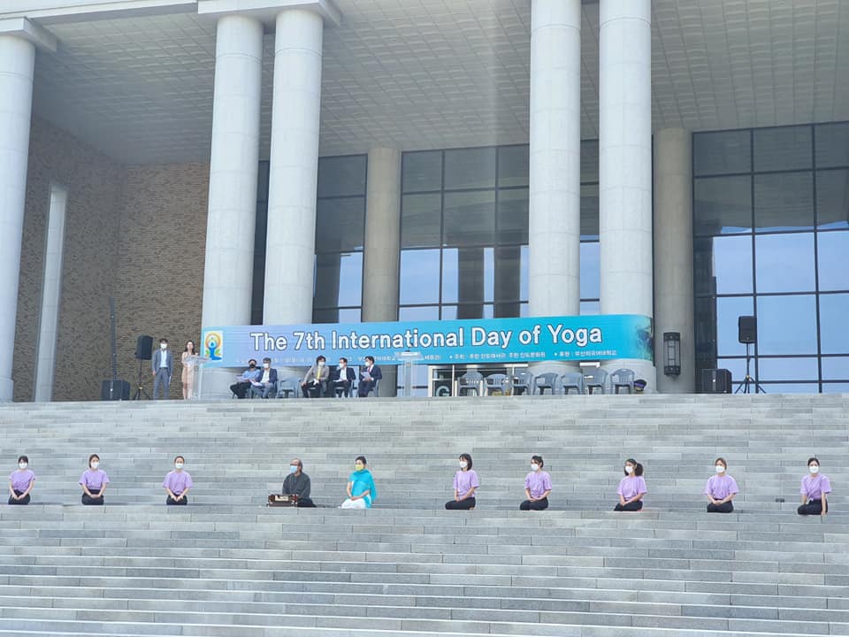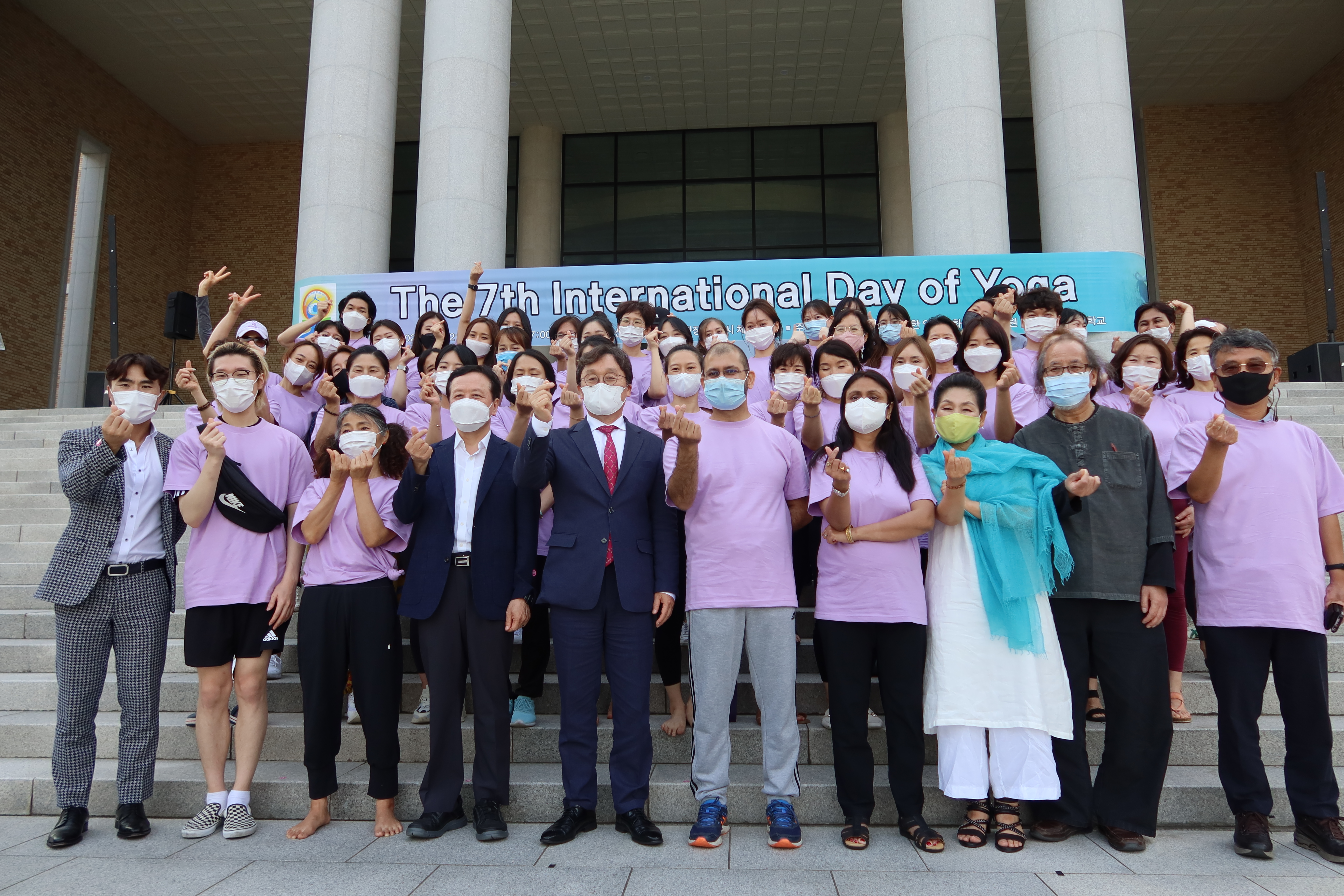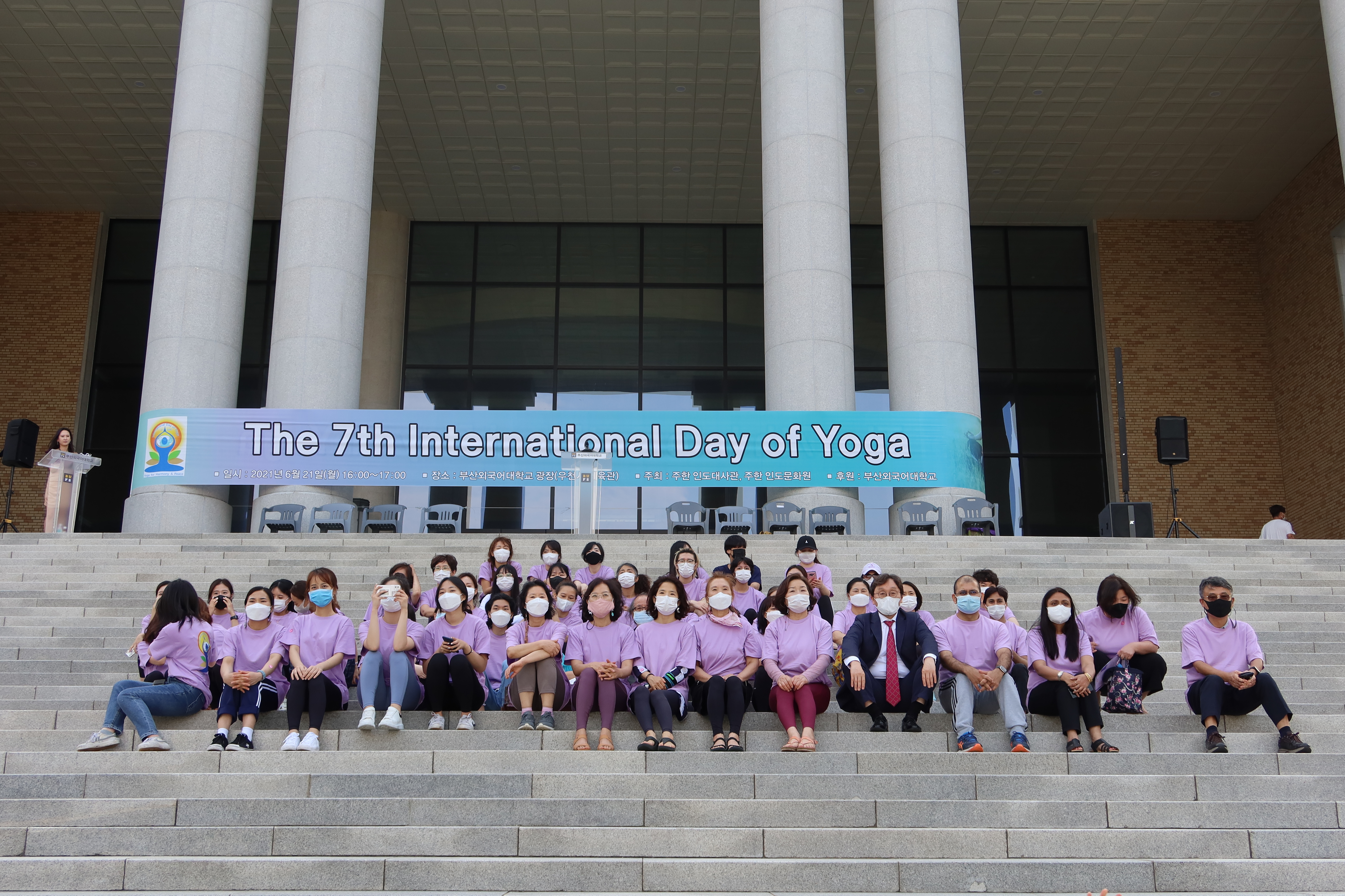 Busan University of Foreign Studies organised Yoga and Meditation Session for students and faculty members with leading Yoga experts from Busan. Event was attented by Prof. Kim Hong-gu, President of BUFS, Prof Sun Cheol Lee, faculty at BUFS, Prof Geo-lyong Lee and Mrs Lee Hang-ji from Lee Aashram along with Mr. Jeong Deok-min, HCG of India in Busan.