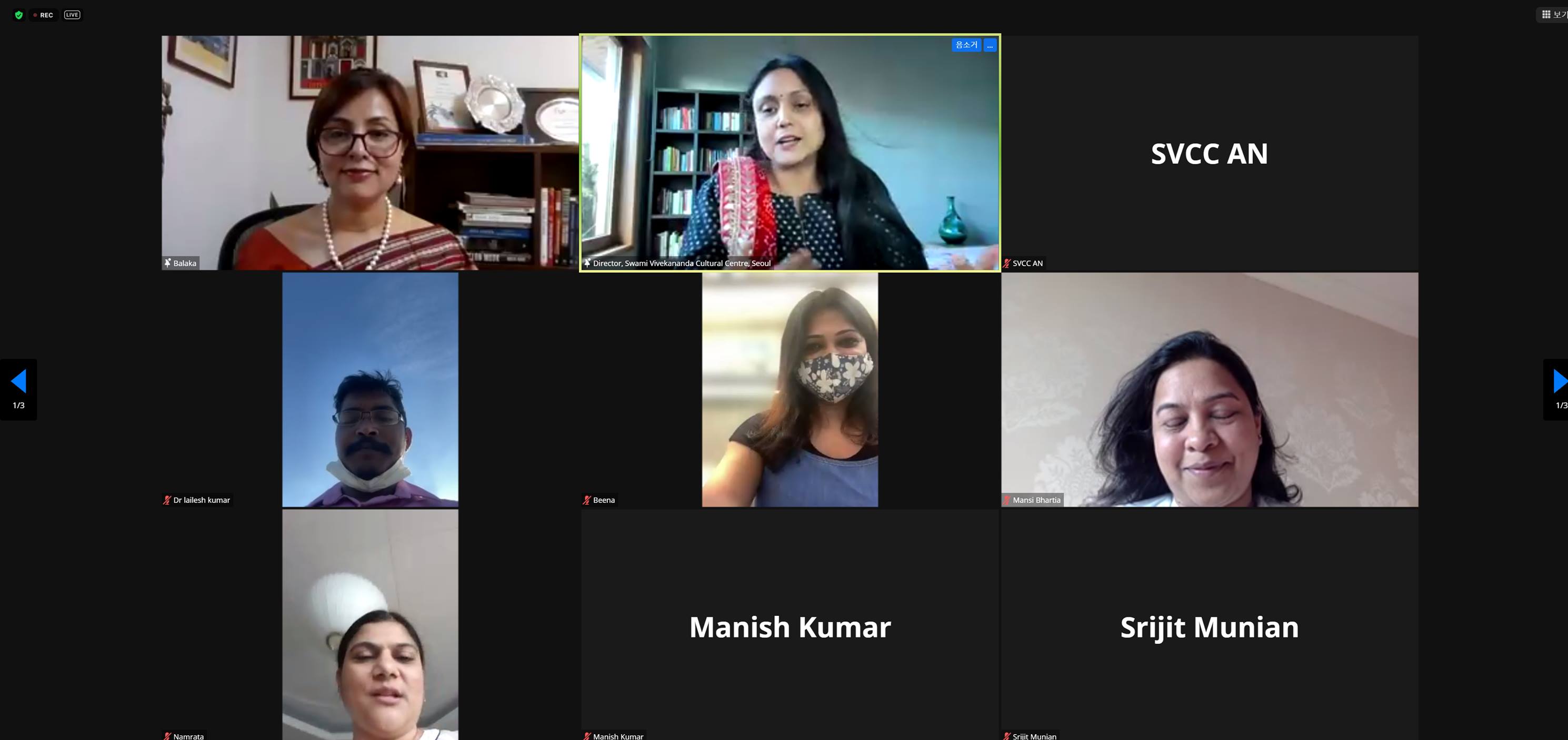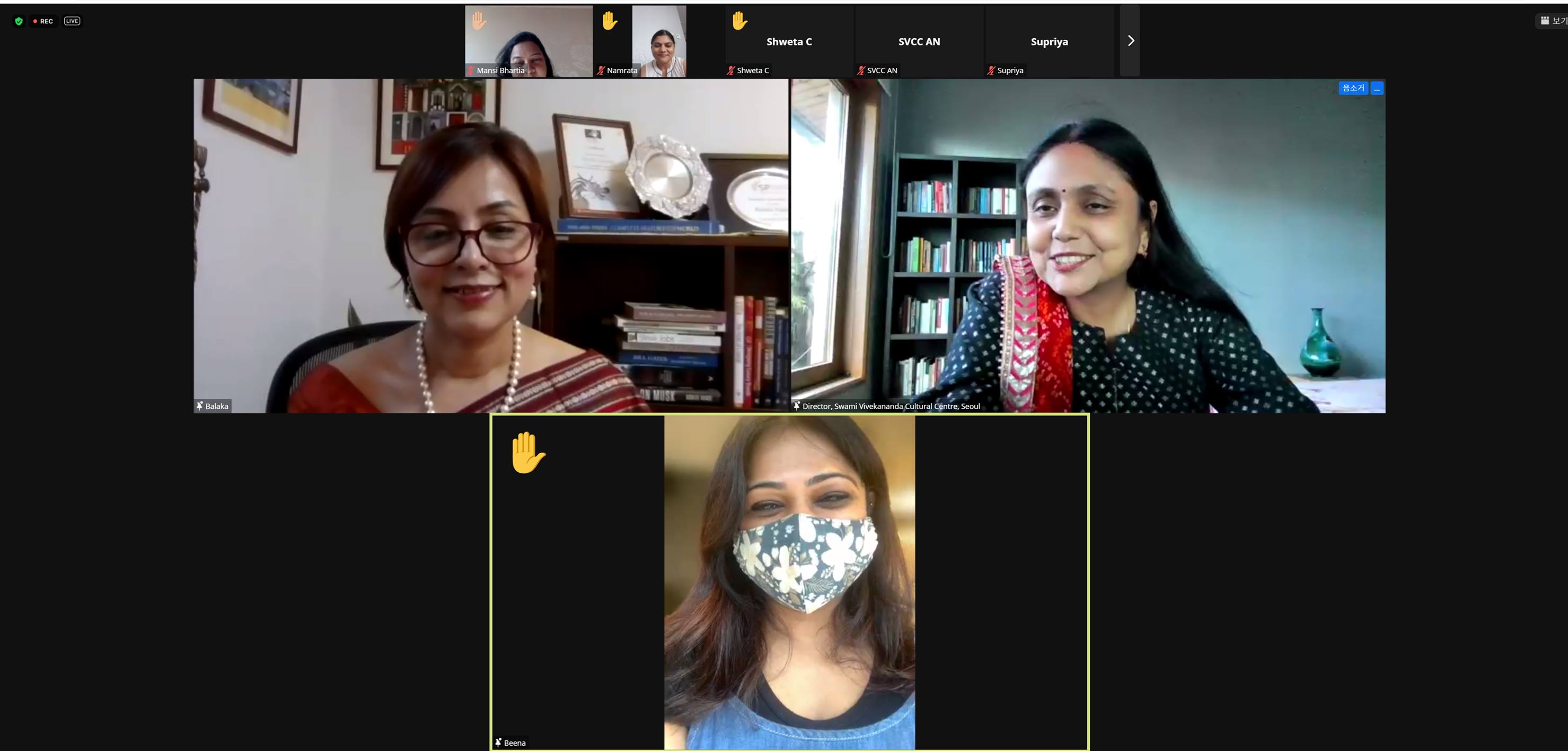 A Special Series was started by Swami Vivekananda Cultural Centre, Embassy of India, Seoul titled ‘Conversation with Indian Diaspora in Republic of Korea’ under Azadi Ka Amrit Mahotsav (AKAM). First Conversation in the Series was organised with Ms. Balaka Niyazee, CEO of Procter and Gamble, Korea on September 18, 2021. Indian community members and friends of India in Republic of Korea participated and engaged in the conversation which was held online and live-streamed on social media handles of the Cultural Centre.