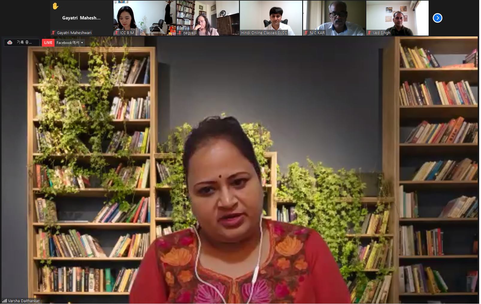 On this occasion Special Address was delivered by Prof. Beena Sharma, Director, Kendriya Hindi Sansthan, Agra and panelists included Prof. Maria Negyesi, Former Head, Dept of Indology, ELTE University, Budapest, Hungary; Prof. N. C Kar, Dept of Indian Studies, Hankuk University of Foreign Studies, Seoul; Dr. Ved Prakash Singh, Associate Professor, Graduate School of Language and Culture Studies in Language and Society, Osaka University, Japan; Ms. Varsha Daithankar, Project Officer, Sydney Institute of Community Languages Education, Sydney University; Dr. Yeon-Woo, Son Assistant Professor, Department of Indian Studies, Busan University of Foreign Studies and Mr. Satyanshu Srivastava, Assistant Professor, Centre for Korean Studies, Jawaharlal Nehru University, New Delhi.