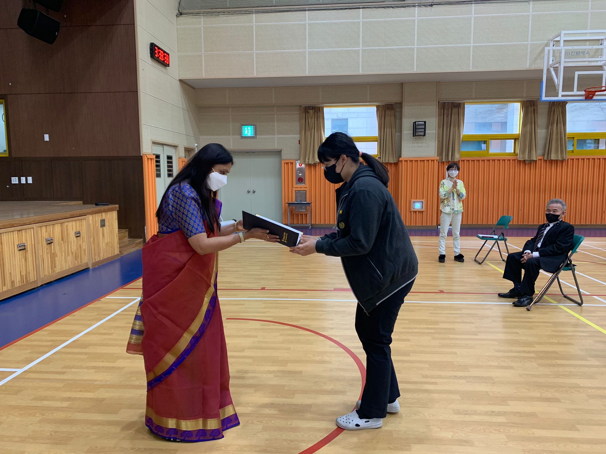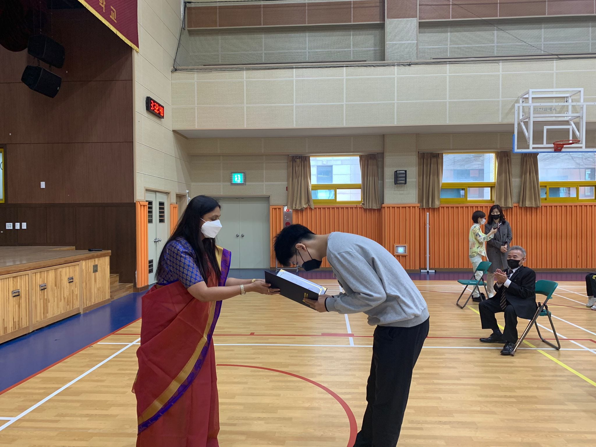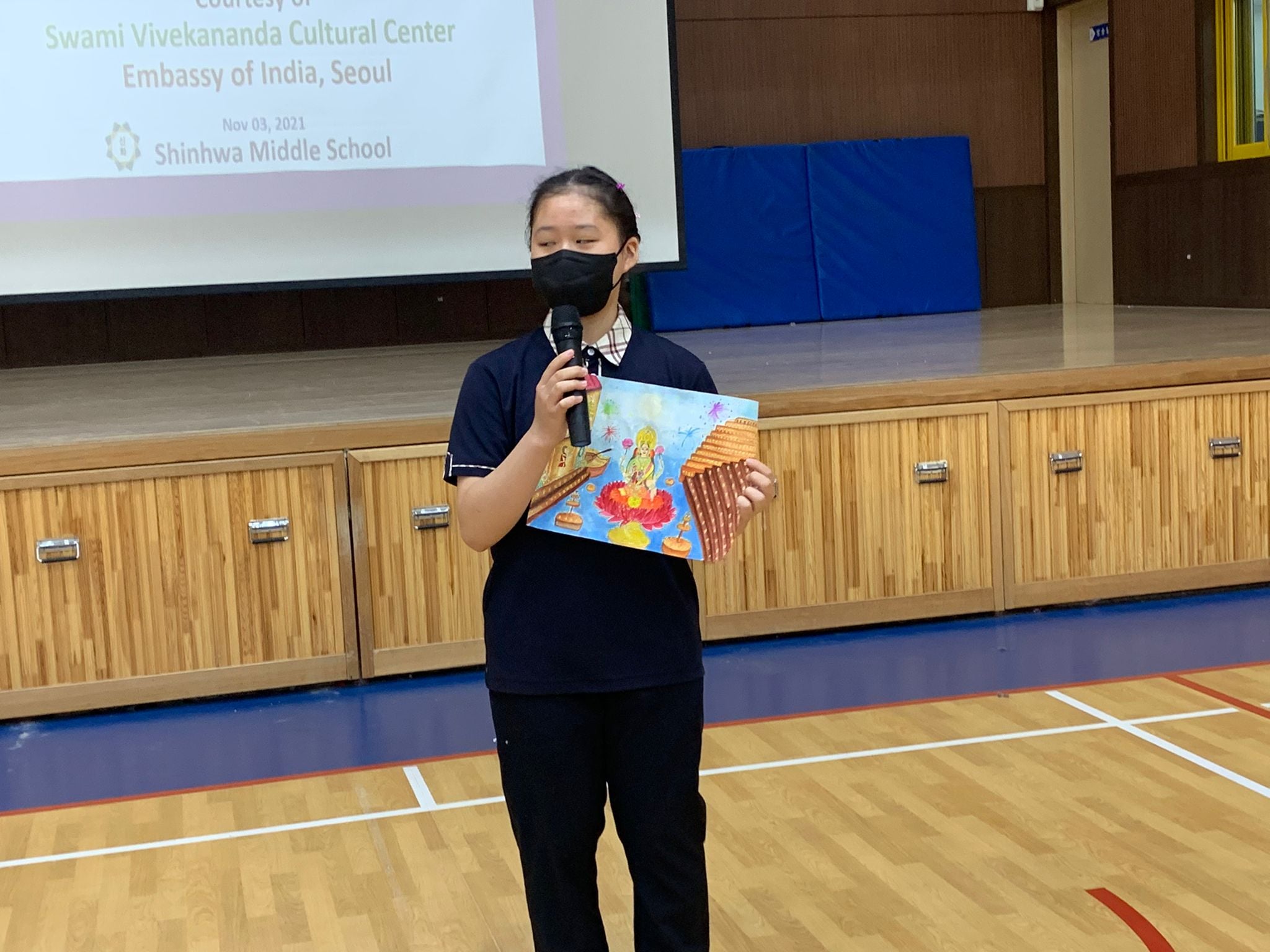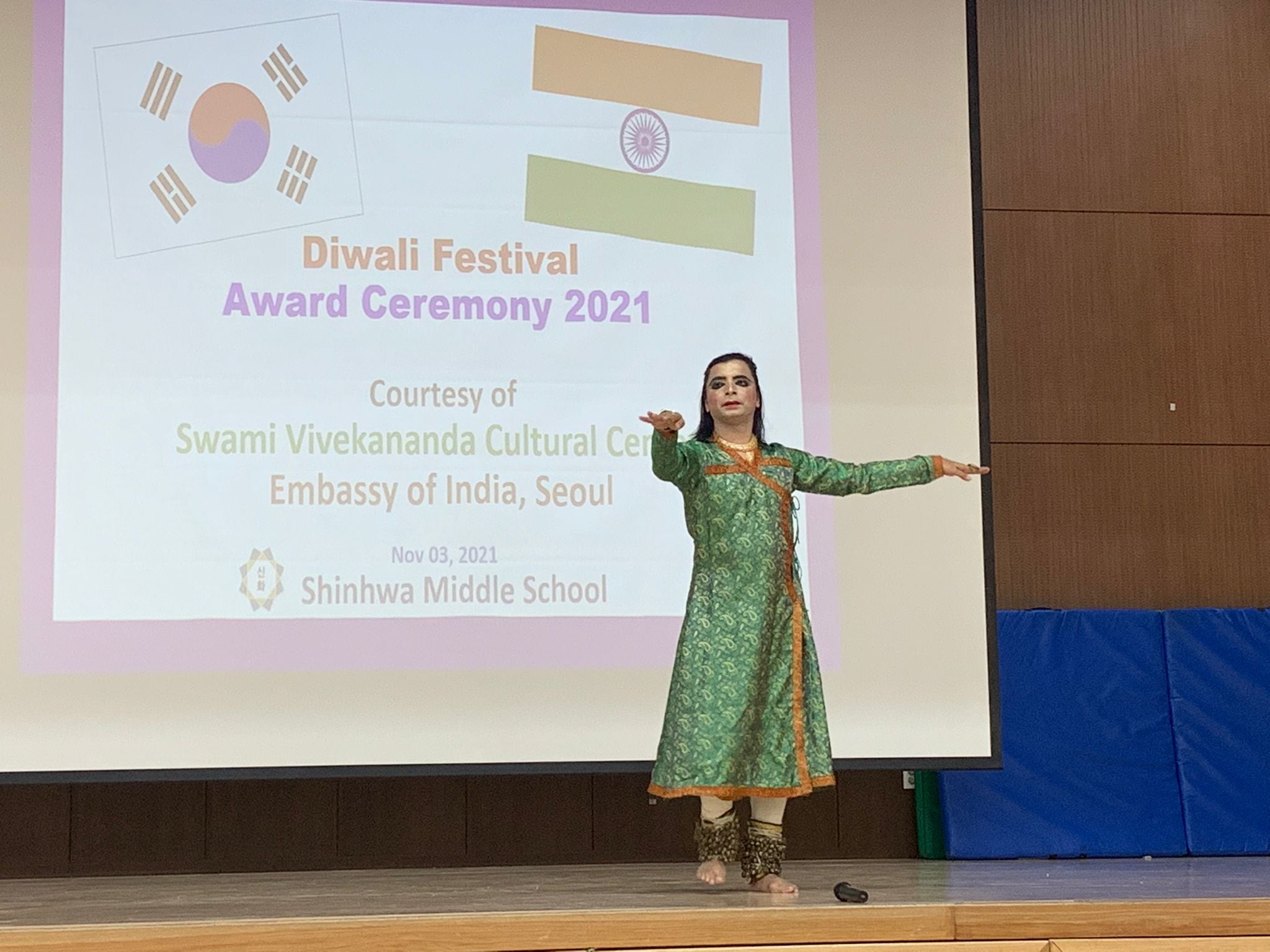 Mr. Jeong Woo-seop, Principal of Shinwha Middle School gave welcome remarks followed by special address by Dr. Sonu Trivedi, Director of SVCC on the occasion of Diwali. Winners of Painting competition on Diwali were announced and students presented their winning paintings. Kathak performance by Mr. Avijeet Chakravarty and Rangoli drawing were also held on November 3, 2021.