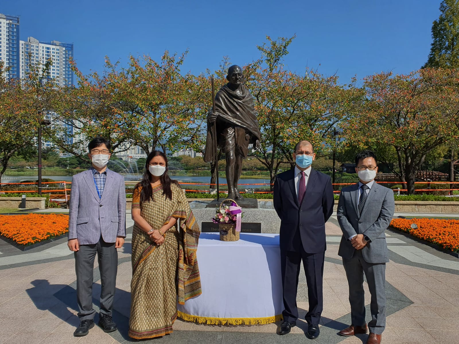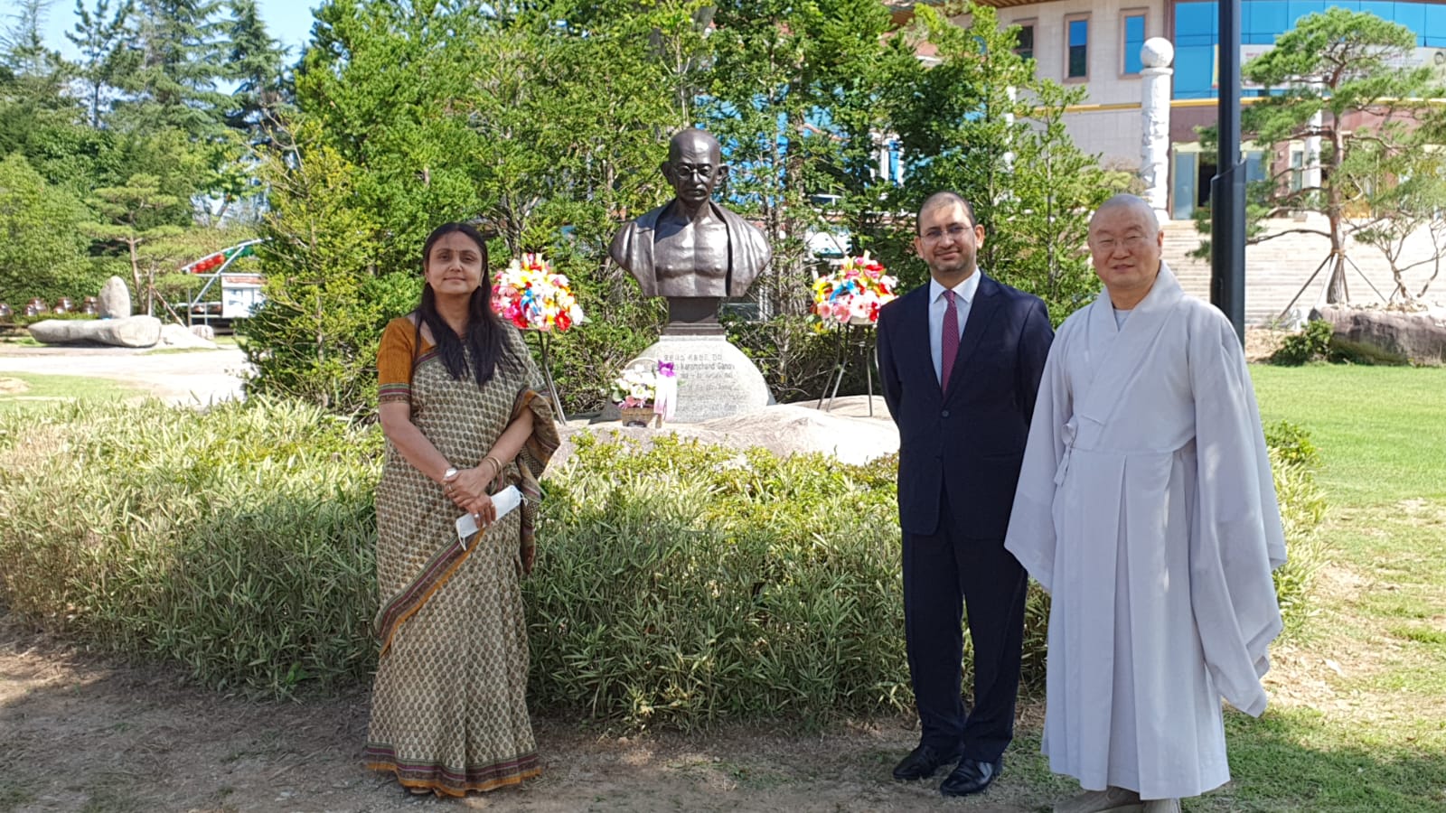 Earlier a day ago, DCM and SVCC Director paid floral tributes to Statue of Mahatma Gandhi located at Friendship Park, in Gimhae City and at the Gandhi Bust located at Hongbeopsa temple located at Busan.