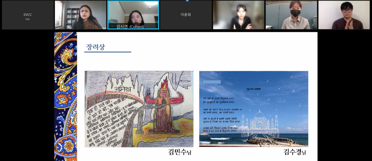 Under Azadi Ka Amrit Mahotsav, Online Prize Distribution ceremony was held for Hindi Calligraphy Competition for Korean students organised in collaboration with the Centre for Critical Foreign Language at Hankuk University of Foreign Studies. Participants depicted the popular Hindi poems and patriotic songs through illustrations using their creativity and artistic skills.