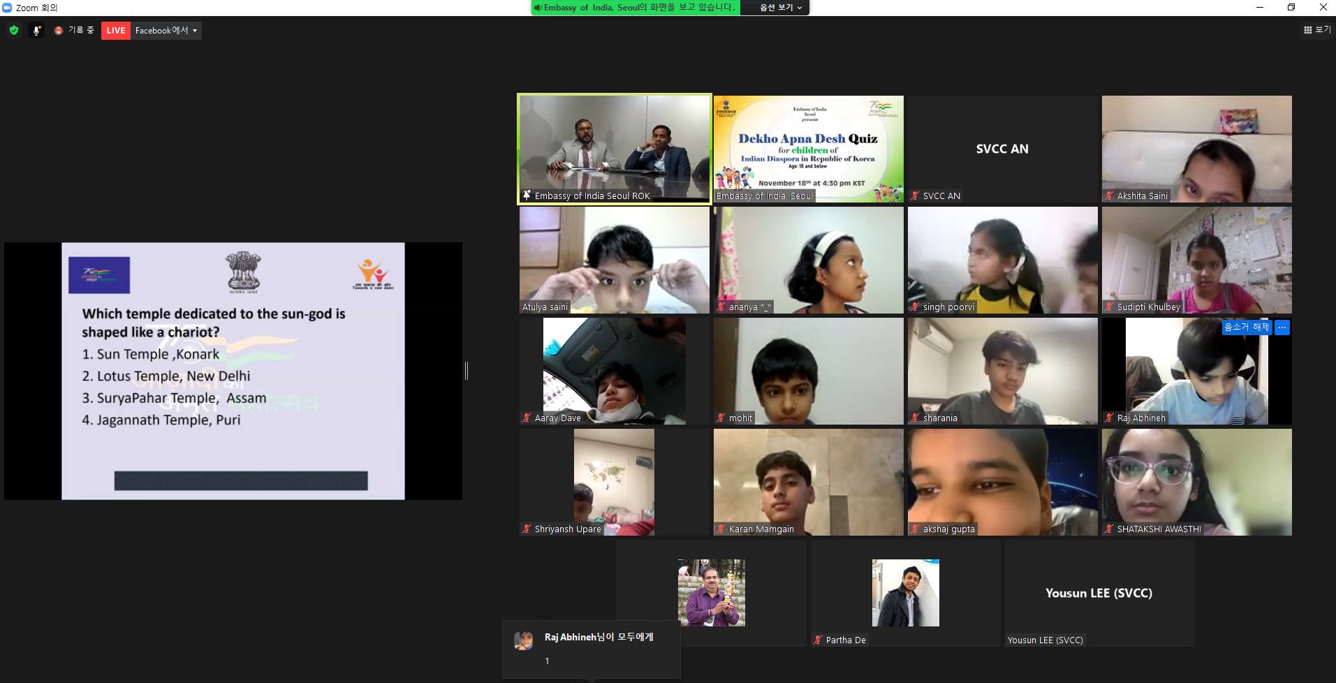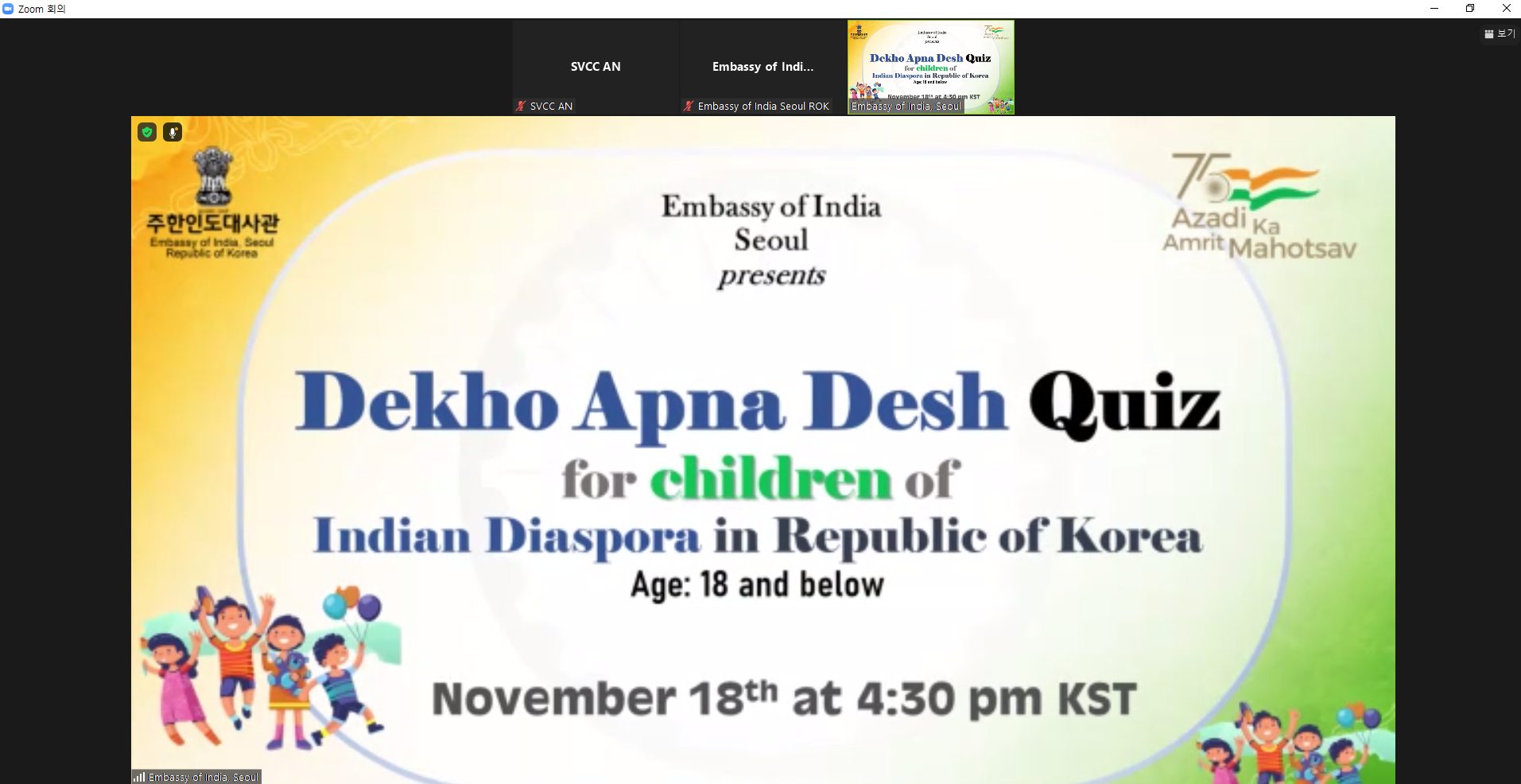 Dekho Apna Desh Quiz Competition organised on November 18, 2021 under Azadika Amrit Mahotsav for the children of Indian Diaspora in Republic of Korea.