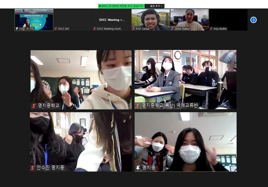 Around 30 students from Myeongji Middle School, Busan joined Pariksha Pe Charcha. Ms. Jin Ju-ha (3rd grader from Myeongji Middle School) shared her experience of fighting with the exam stress during the COVID 19 pandemic. Over 30 students from Department of Hindi at Hankuk University of Foreign Studies also participated LIVE during the Session. After this initial interaction, participants witnessed the Live telecast of address by PM Narendra Modi and his interaction with students from different parts of India. The Session was moderated by Mr. Swapnil Thorat, Head Commerce and Investment, Embassy of India, Seoul. Dr. Lailesh Kumar, President, ISRK gave the concluding remarks highlighting the contribution of ISRK in bringing the Indian students and researchers at one platform and helping them during difficult times.