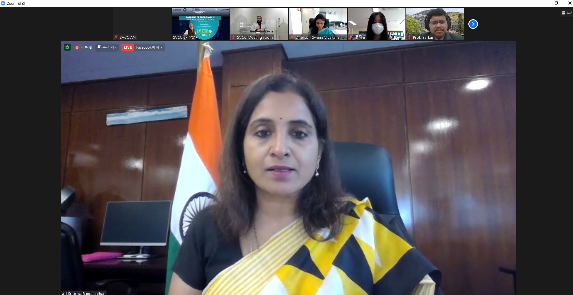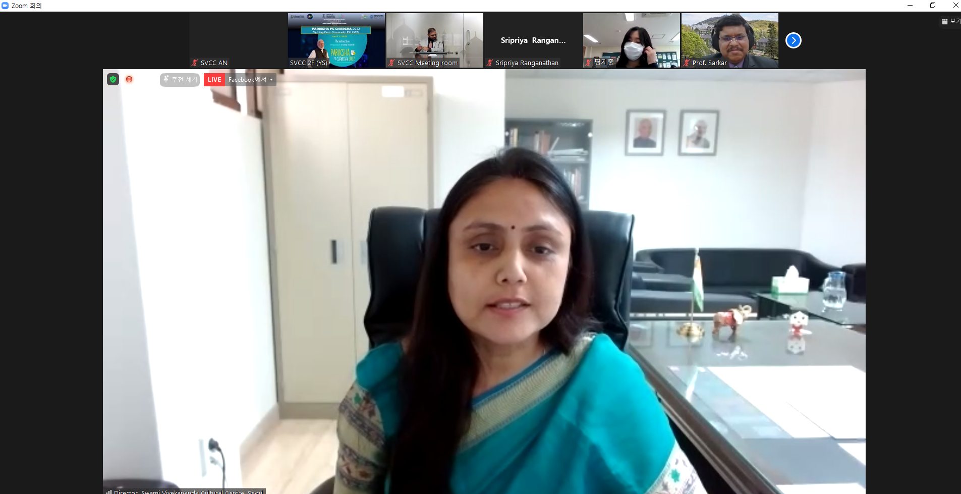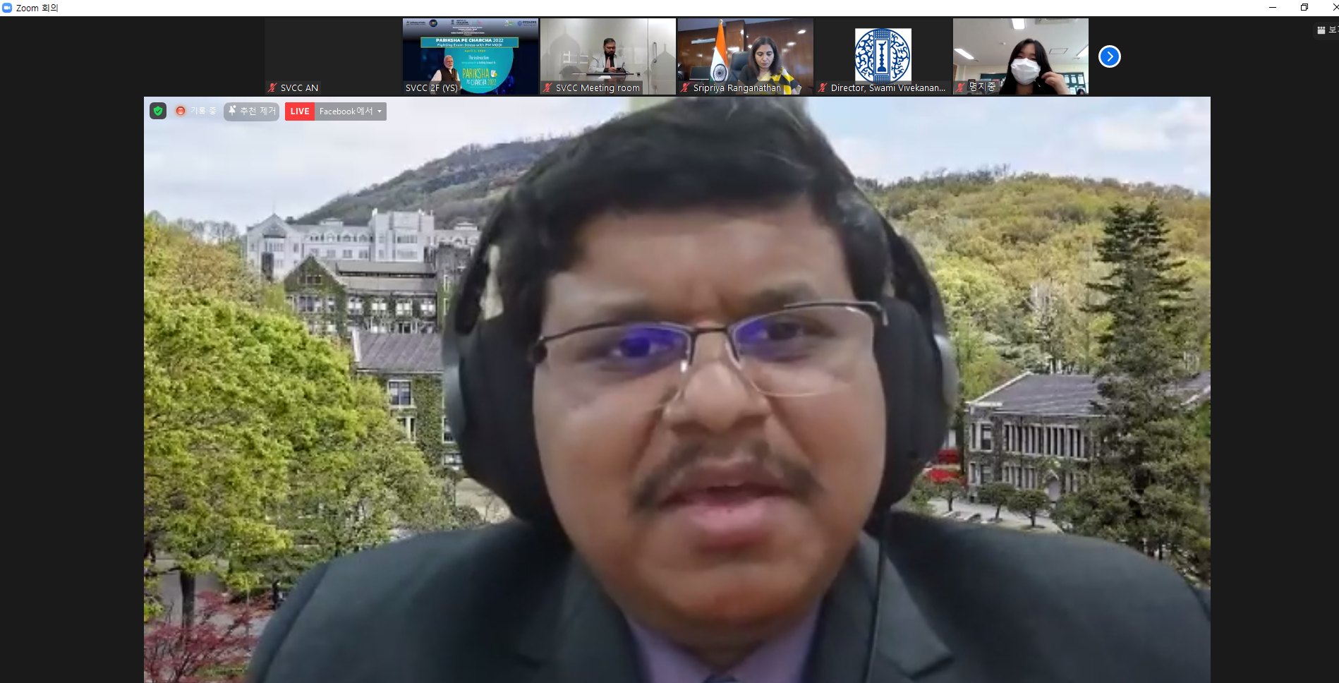 Preceding the PM’s interaction, Mission had organized a LIVE Session with students and faculty members from prominent institutions in ROK. H. E. Sripriya Ranganathan gave welcome remarks during the session. Amb. Ranganathan welcomed the participants and spoke about the anxiety, stress and peer pressure students are facing world over in a competitive world. She also focused on how a balanced approach is required by students in coping up with the exam stress.