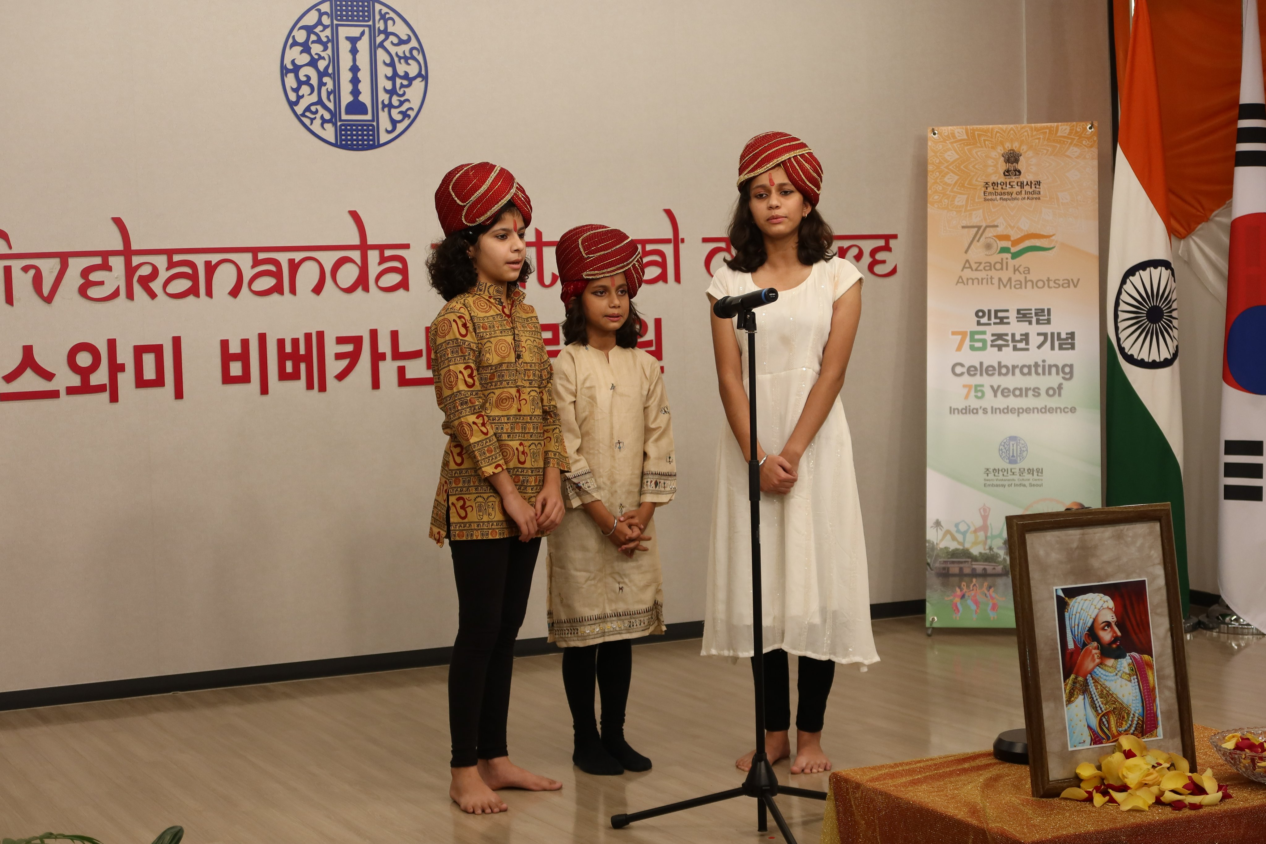 Description – Under AKAM, Coronation Day of Chhatrapati Shivaji Maharaj was organized on June 7. Embassy officials along with members of Marathi Mandal in Korea participated in the ceremony & offered floral tribute to Shivaji Maharaj.
