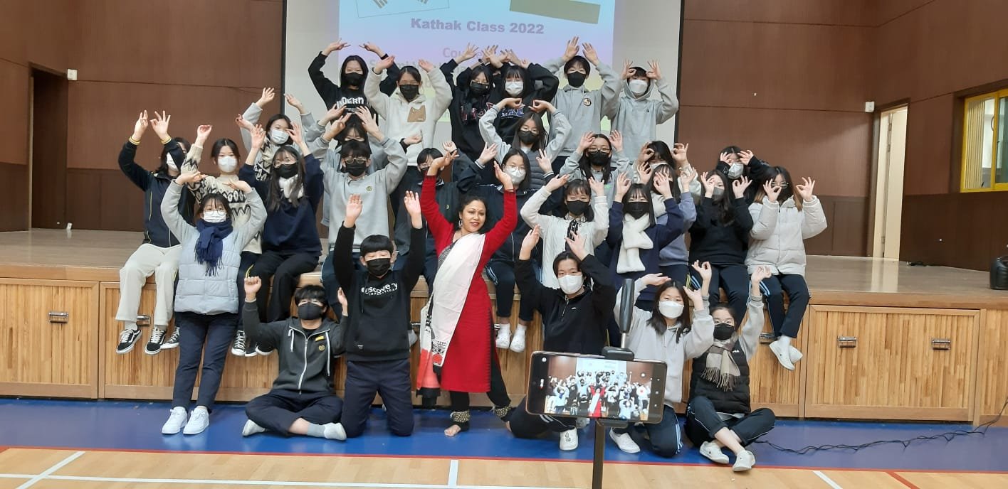 Under outreach programme of SVCC, Seoul Indian Classical Dance Workshop was organised at Shinhwa Middle School in Seoul on Dec 2. Korean students actively participated in the Workshop & learnt basic steps of Kathak Dance.