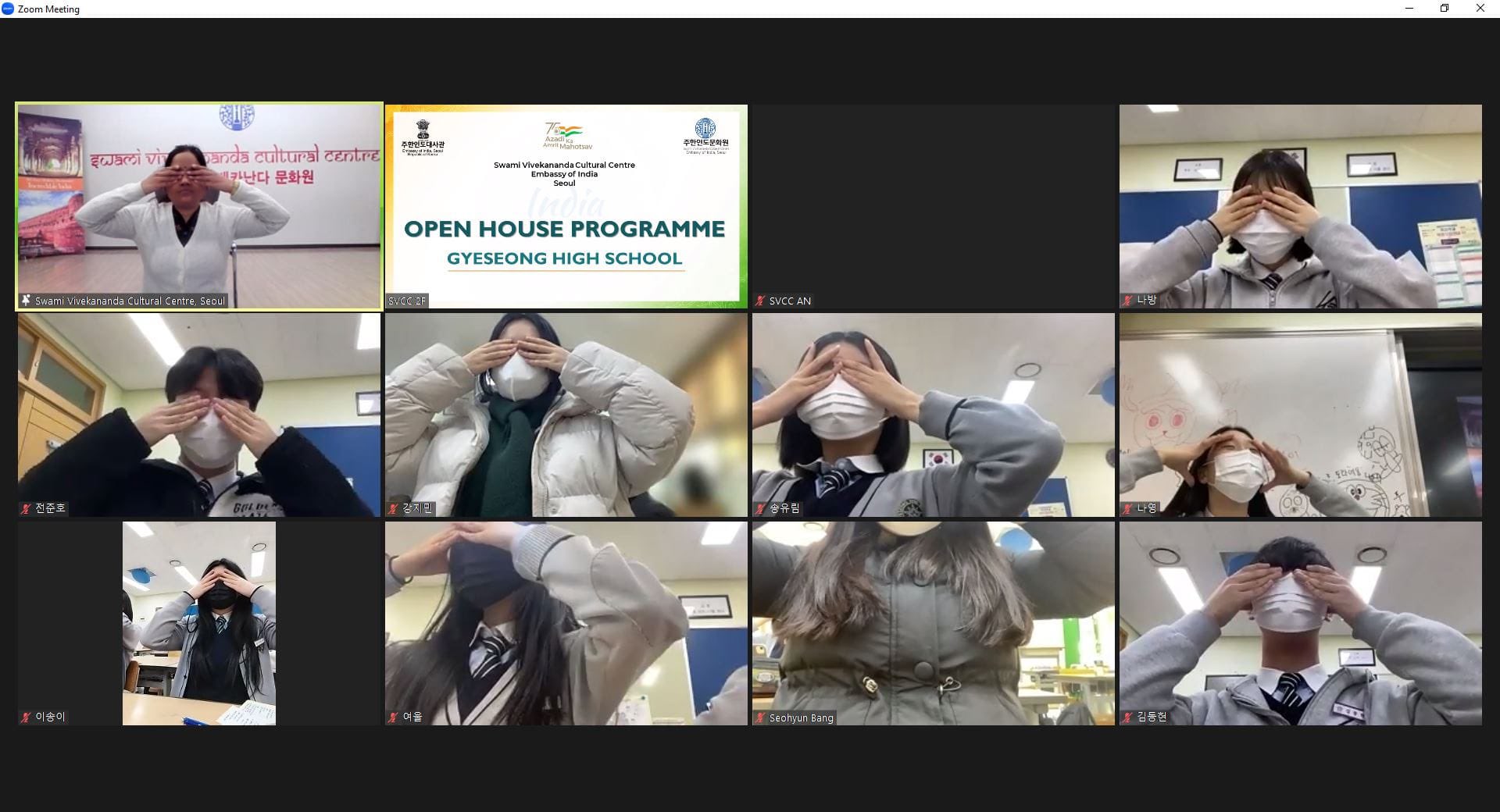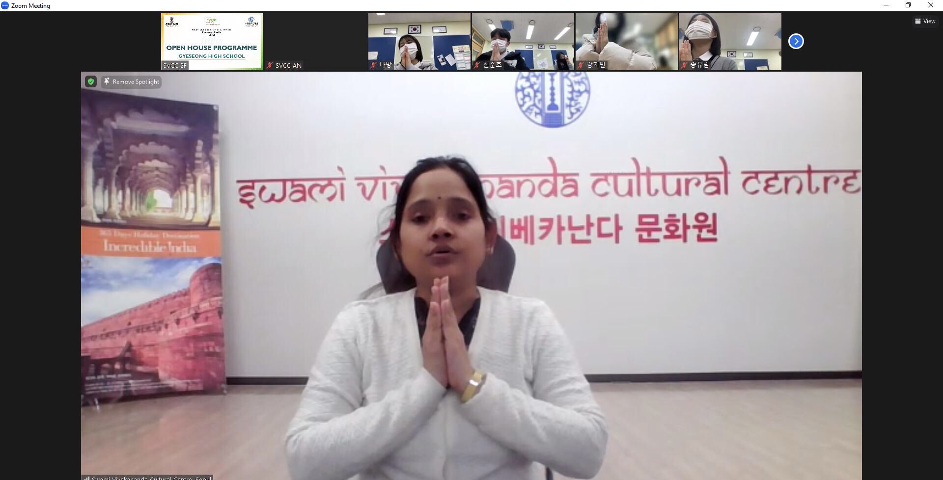 Under outreach activity of SVCC, Seoul, Open house session with students of Gyeseong High School was held on Dec 7. Korean students actively participated in Yoga and Kathak workshop along with Quiz on India.
