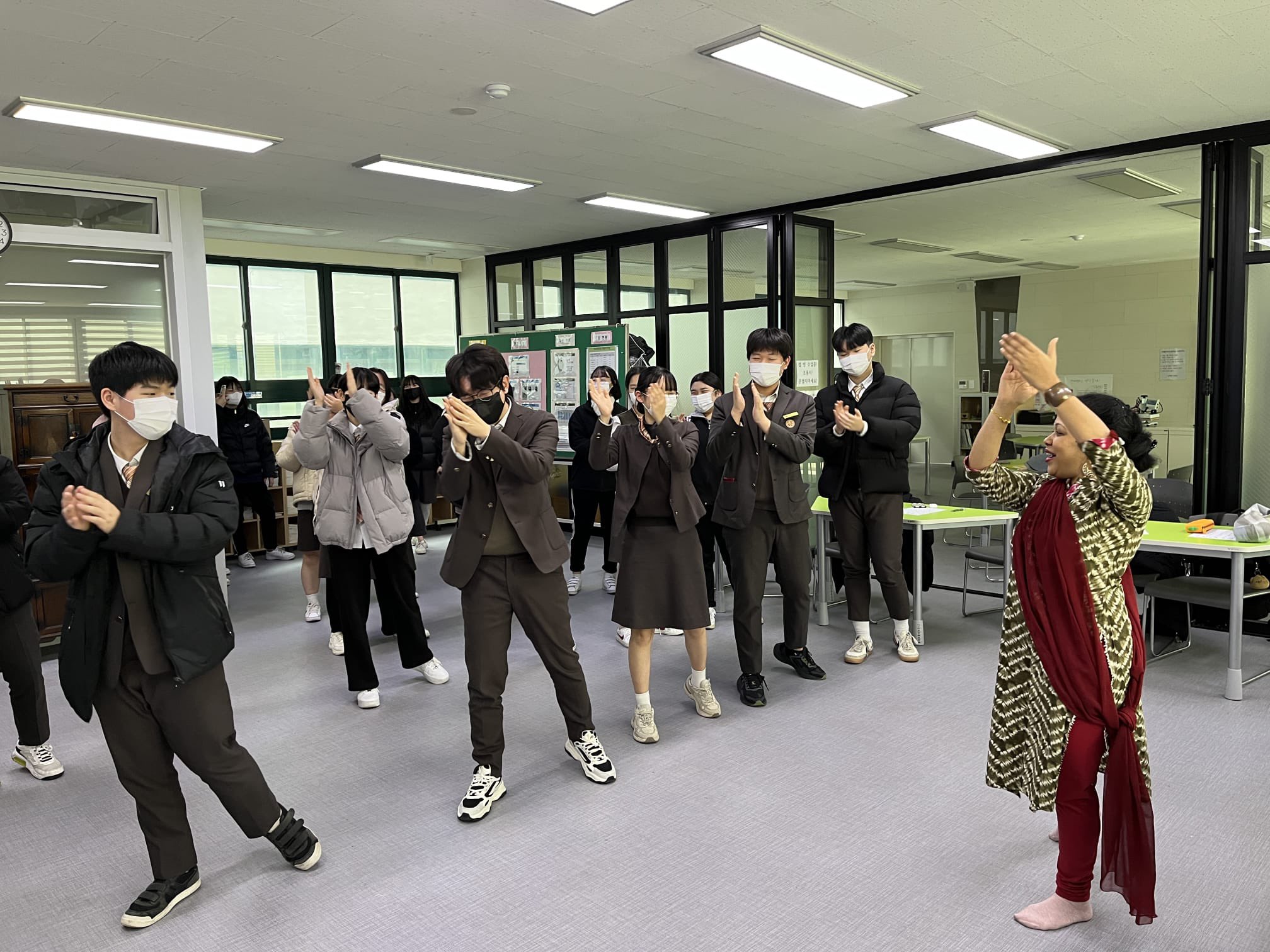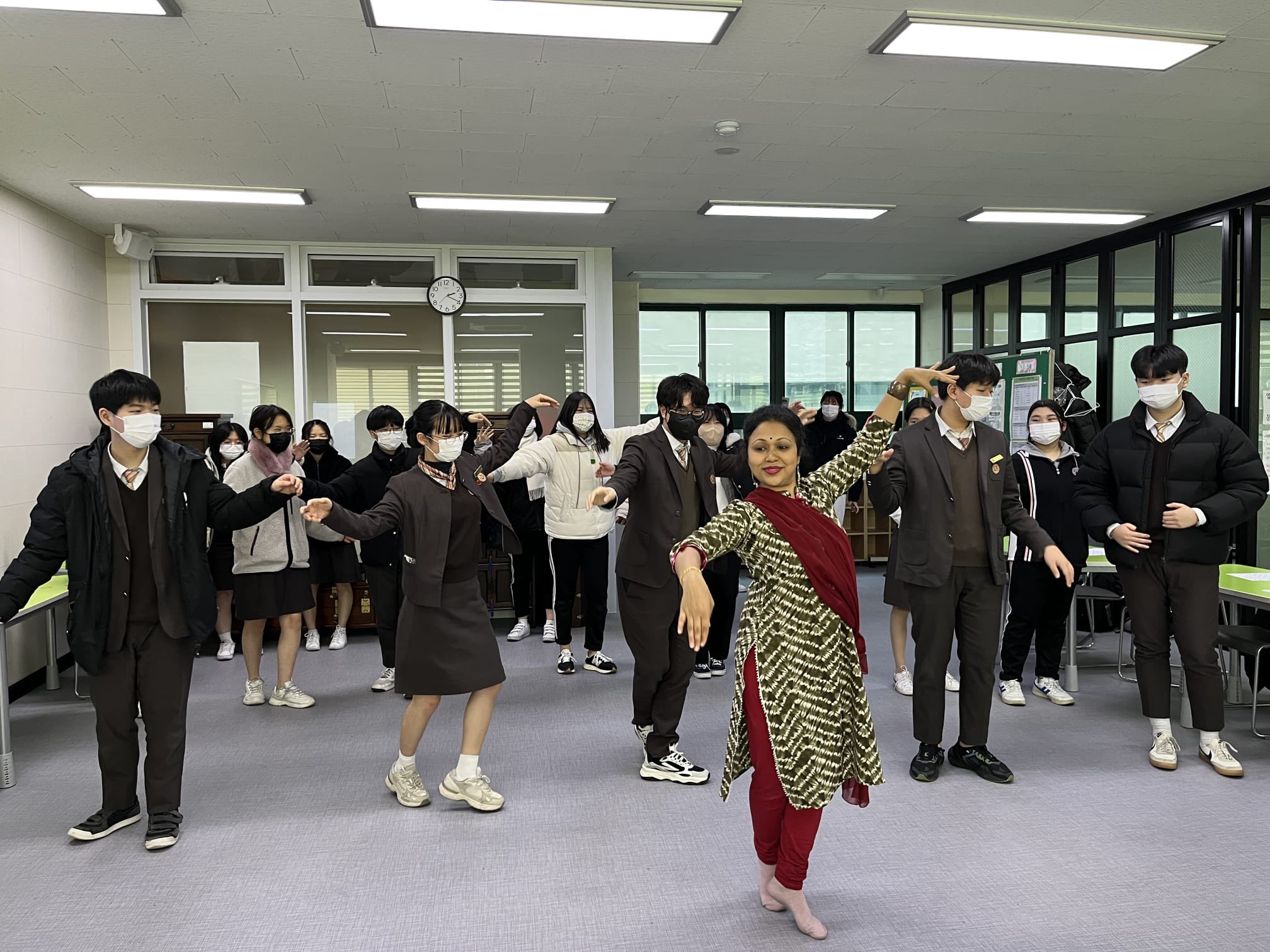India Day at Busan Tourism High School was organized on December 9, 2022. Students participated in Kathak workshop and various hands on activities, writing names in Bengali & Mehndi design.