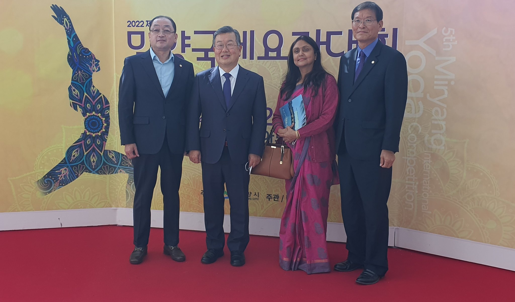 5th Miryang International Yoga Competition was organized by Mirang City in partnership with SVCC, Seoul. Mayor of Miryang, Park Il-ho and other Senior city officials were present at the inaugural ceremony. Director, SVCC, Sonu Trivedi also gave congratulatory message on this occasion and discussed about future areas of cooperation & the upcoming wellness centre for Yoga at Miryang. Yoga enthusiasts from different countries actively participated in the competition.