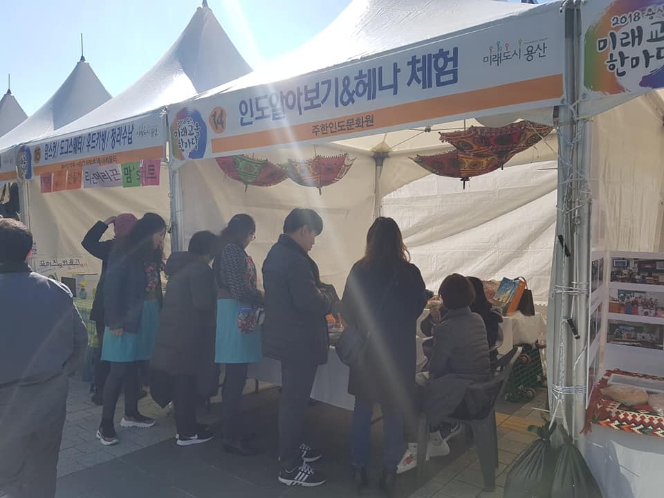 10ì›” 30ì¼, 용산구ì²ì—서 열린 '2018 용산 미래êµìœ¡í•œë§ˆë‹¹' í–‰ì‚¬ì— ì£¼í•œì¸ë„ë¬¸í™”ì› ë¶€ìŠ¤ê°€ 참여했습니다. ì¸ë„ 여행 ê´€ë ¨ 브로슈어, ì¸ë„ë¬¸í™”ì› ë¸Œë¡œìŠˆì–´ê°€ ì œê³µë˜ì—ˆê³ 헤나 ì²´í—˜ì˜ ì‹œê°„ì„ ê°€ì¡ŒìŠµë‹ˆë‹¤.