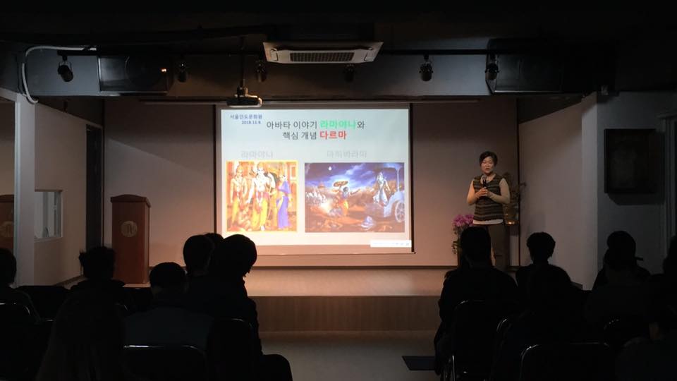 The SVCC lecture series 'Know India' has been held on 8th November at Swami Vivekananda Cultural Centre, Seoul. Prof. Jae-sook Lee from Hankuk University of Foreign Studies/Humanitas college of KyungHee University gave a lecture on 'Ramayana' and 'Dharma'. About 40 people participated and learned about Ramayana.