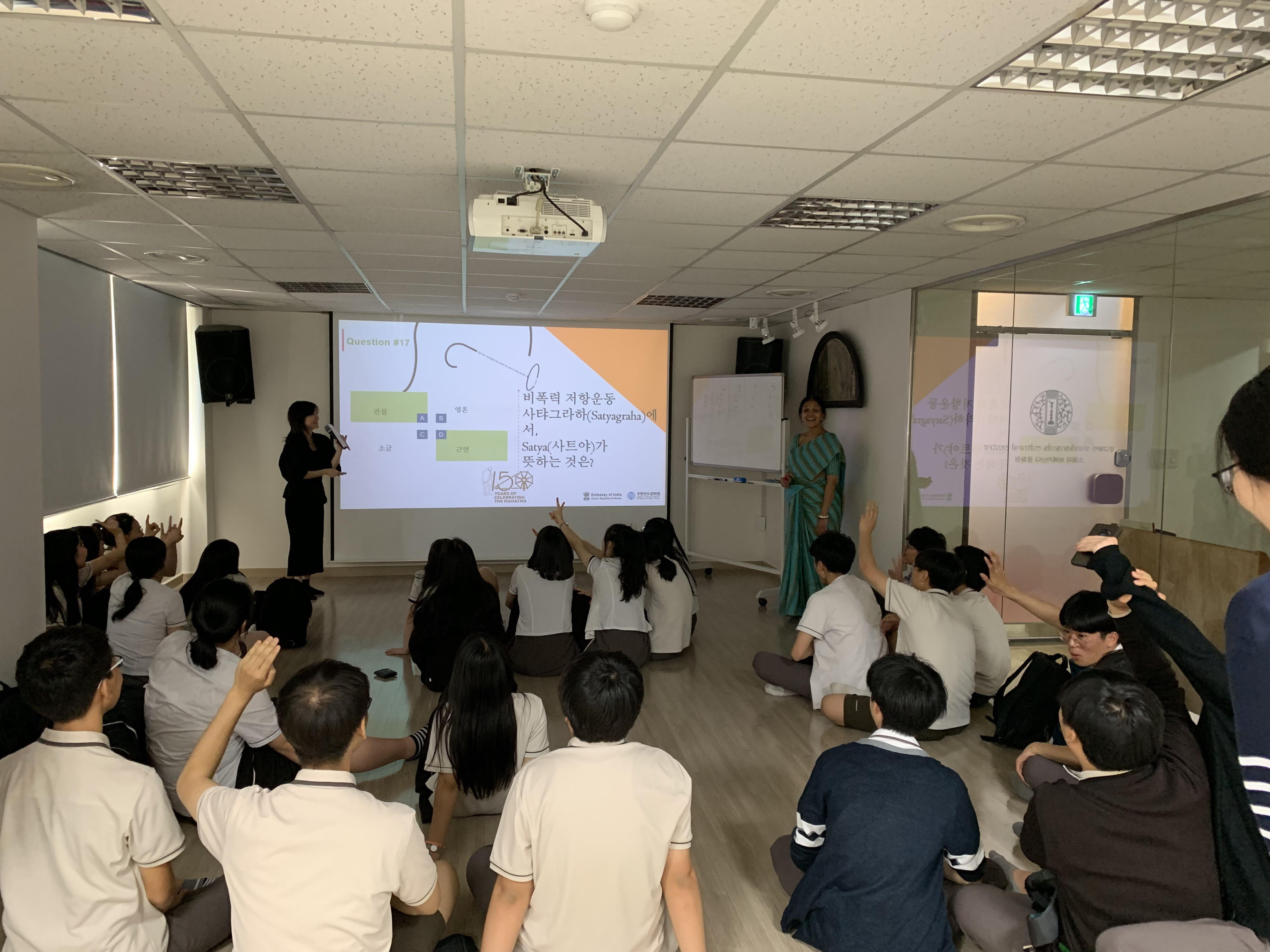 SVCC has organized Open House Program which is conducted by Seoul Metropolitan Offices of Education with Wonmuk High School on 31st May. 25 Students had workshops on Natya Yoga and participated Quiz on Gandhi & India.