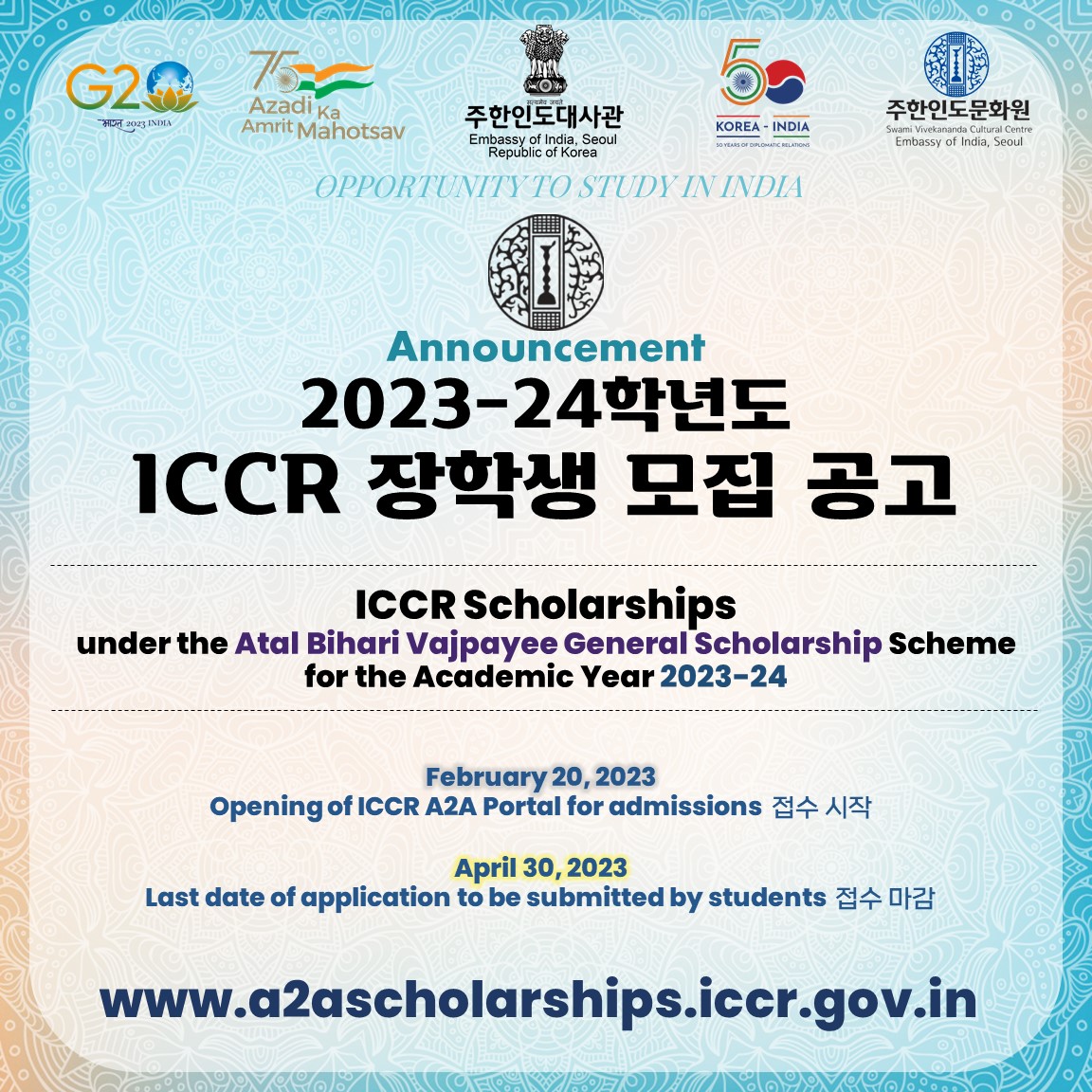 2023-24학년도 ICCR 장학생을 모집합니다.